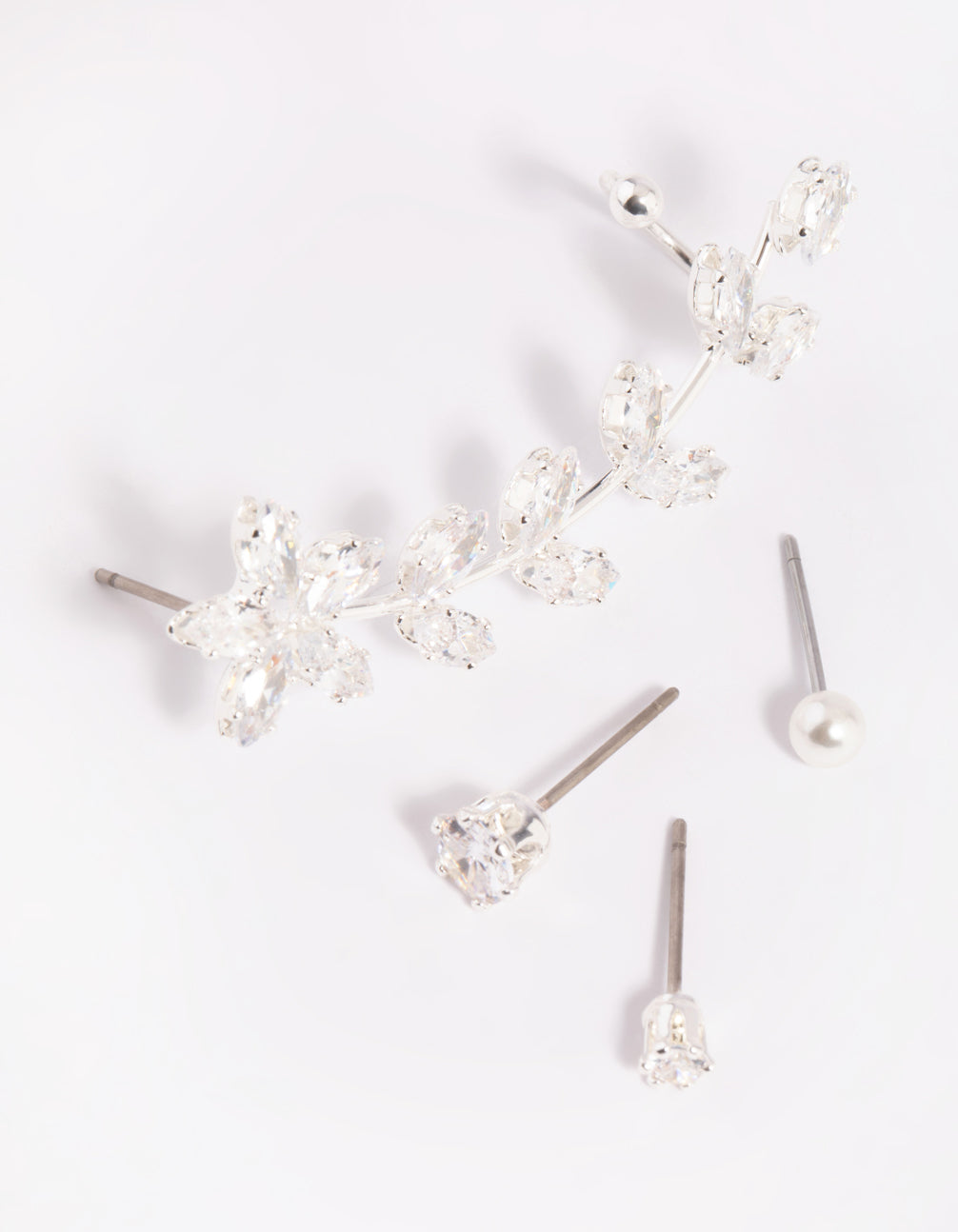 Silver Cubic Zirconia Vine Cuff Earring 4-Pack