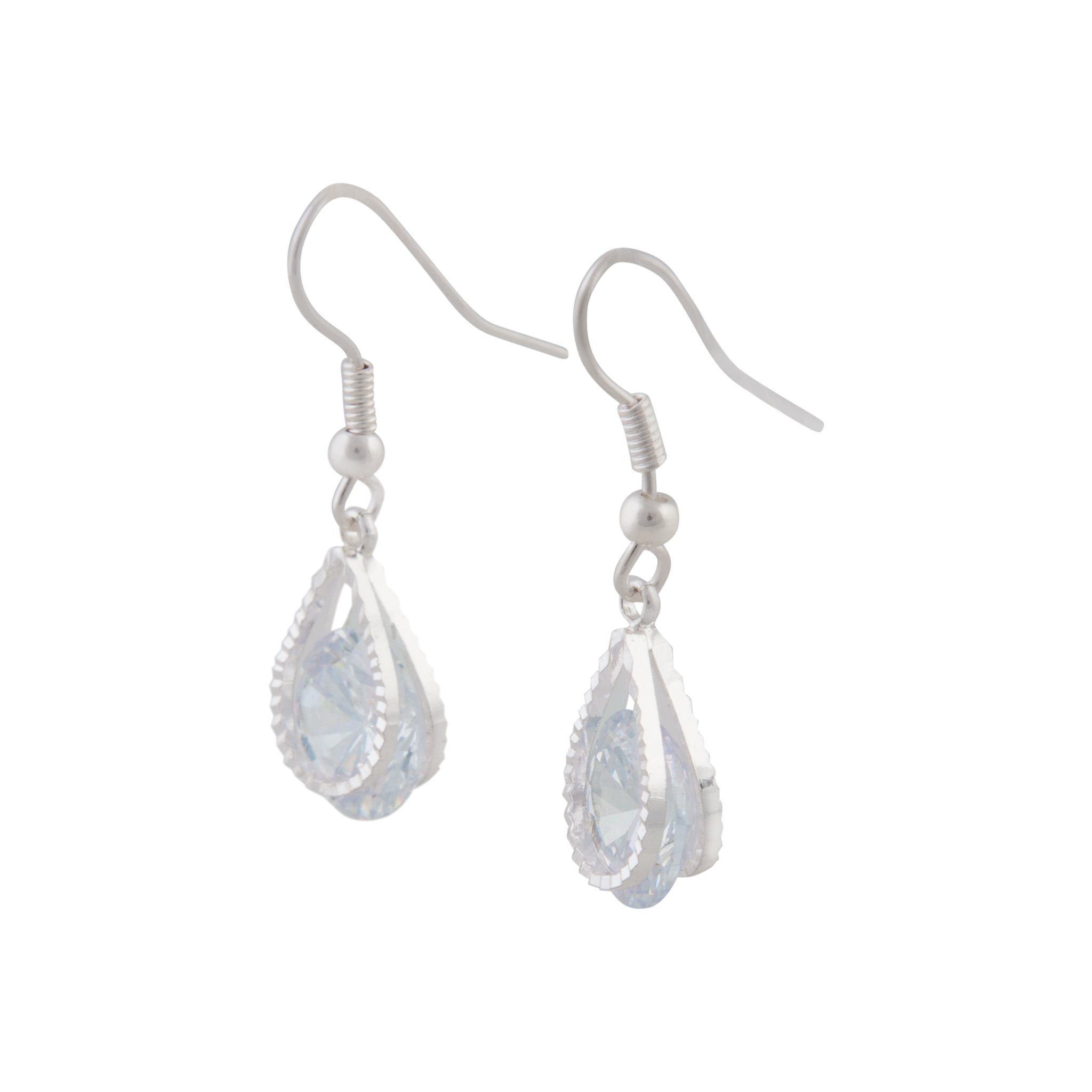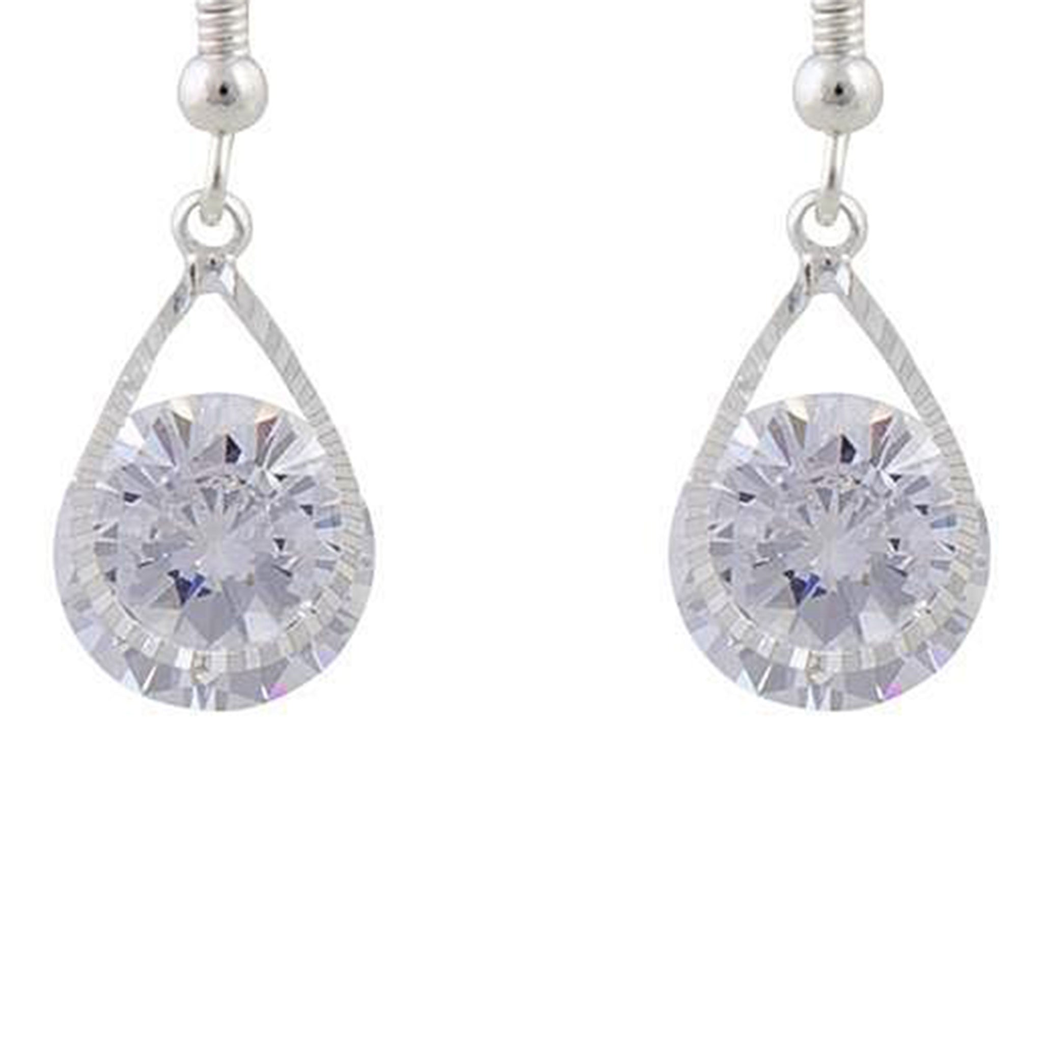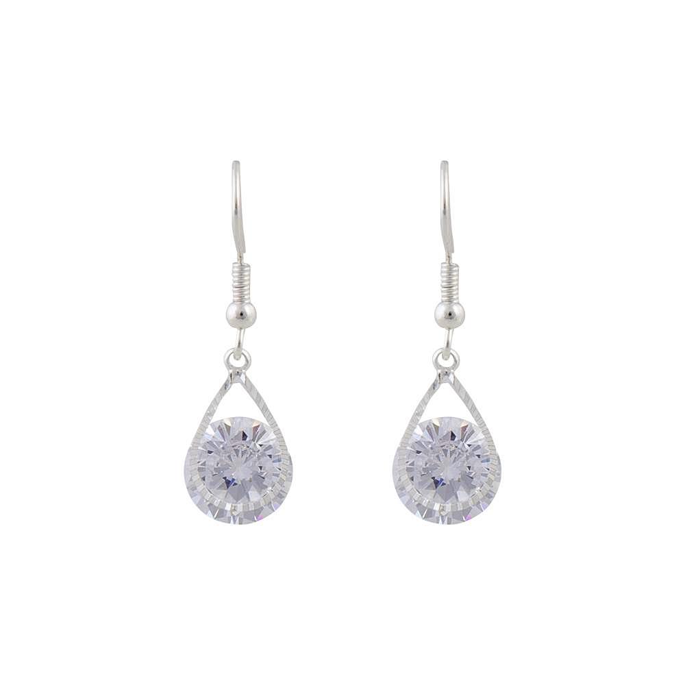 1cm cubic zirconia stone is suspended in a diamond cut teardrop casing for subtle sophistication.