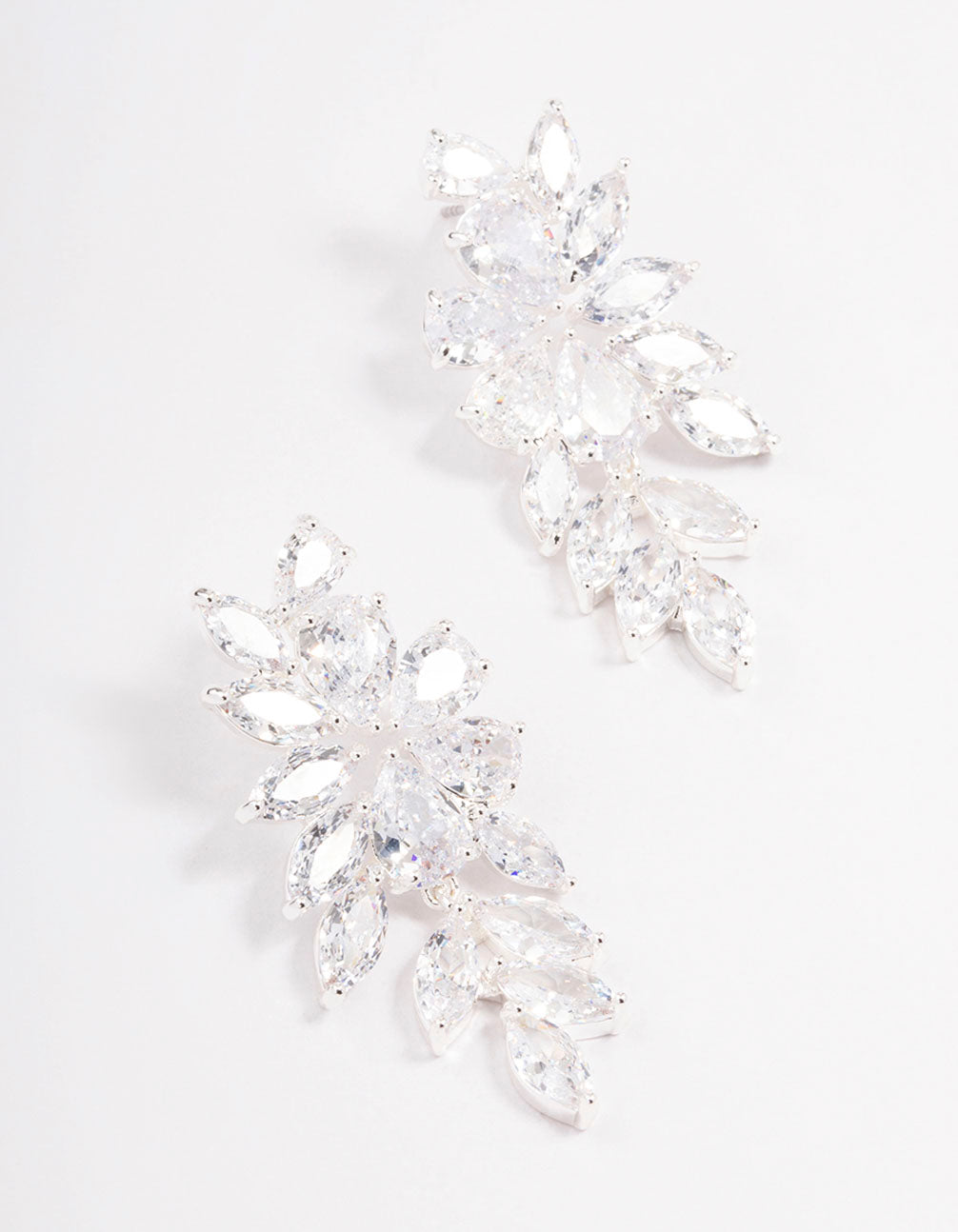 Silver Flower Cluster Drop Earrings
