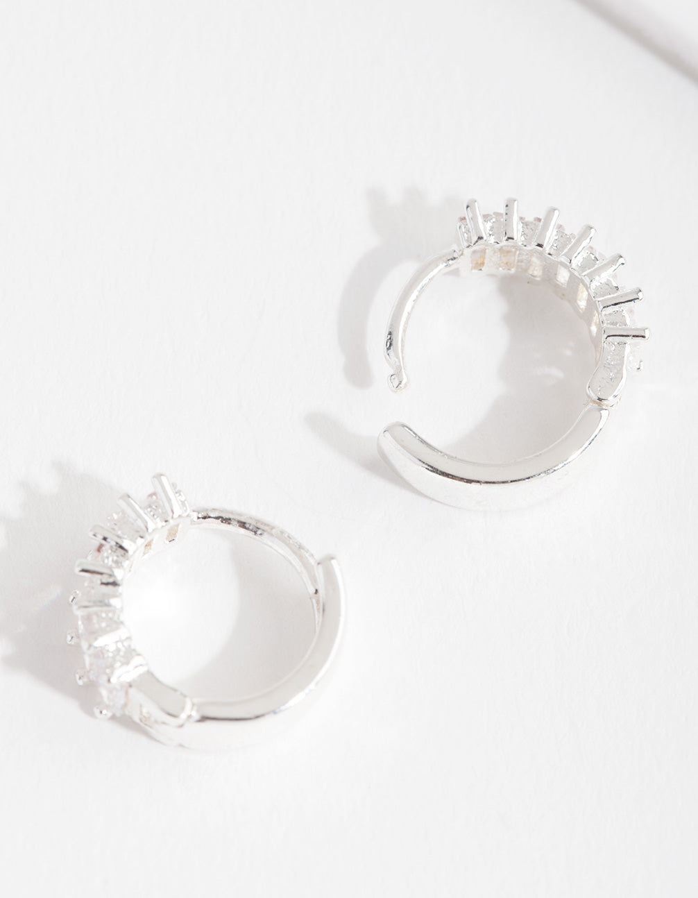 Stack up the style with these huggie earrings. This pair features a silver-toned setting with cubic zirconia embellishments.