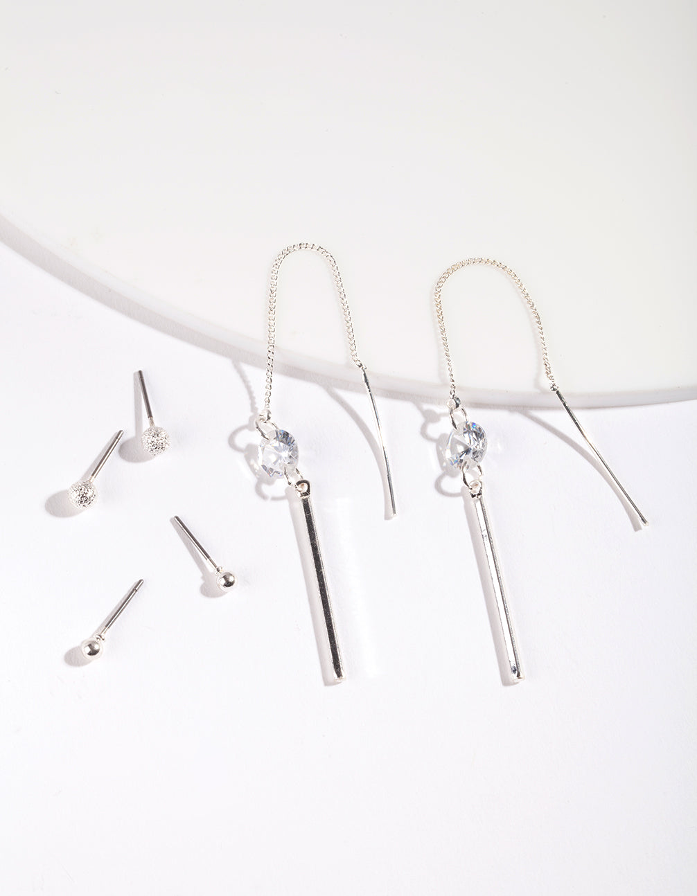 Cubic Zirconia Simple Stud & Chain Drop Earring Pack