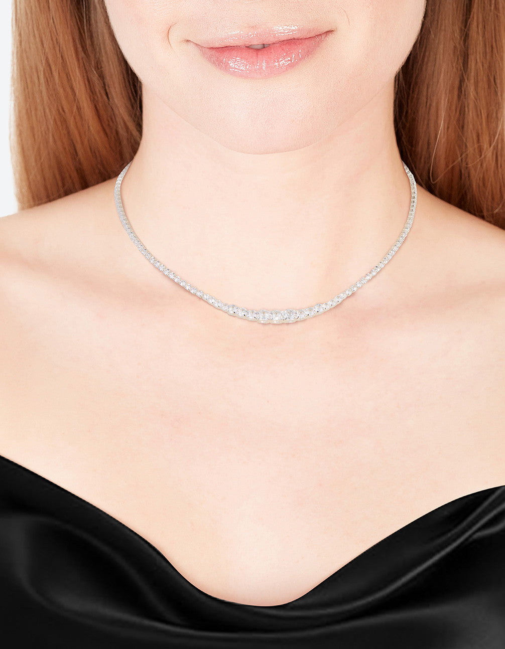 Silver Cubic Zirconia Graduating Diamante Tennis Necklace