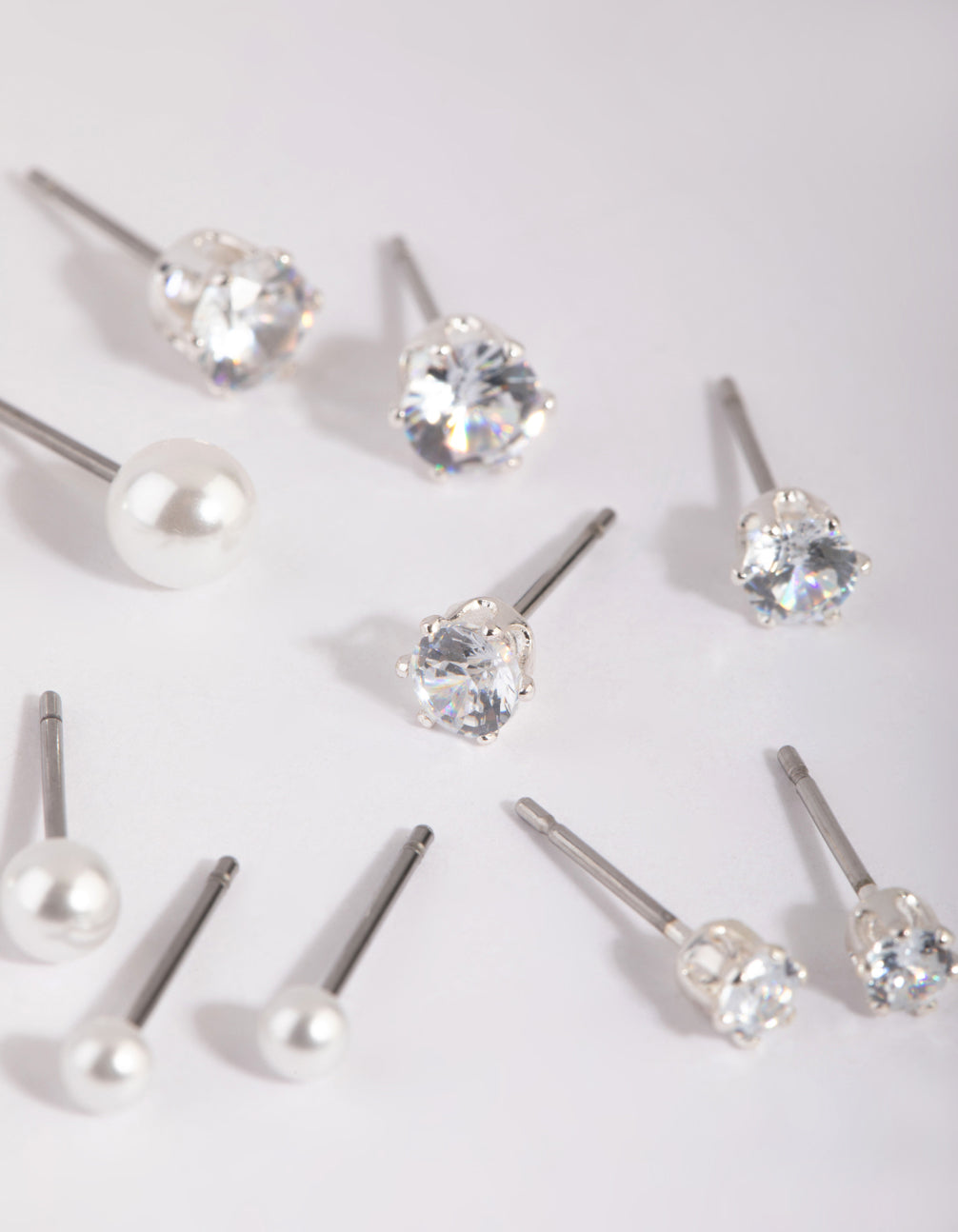 Silver Cubic Zirconia & Pearl Stud Earring 6-Pack