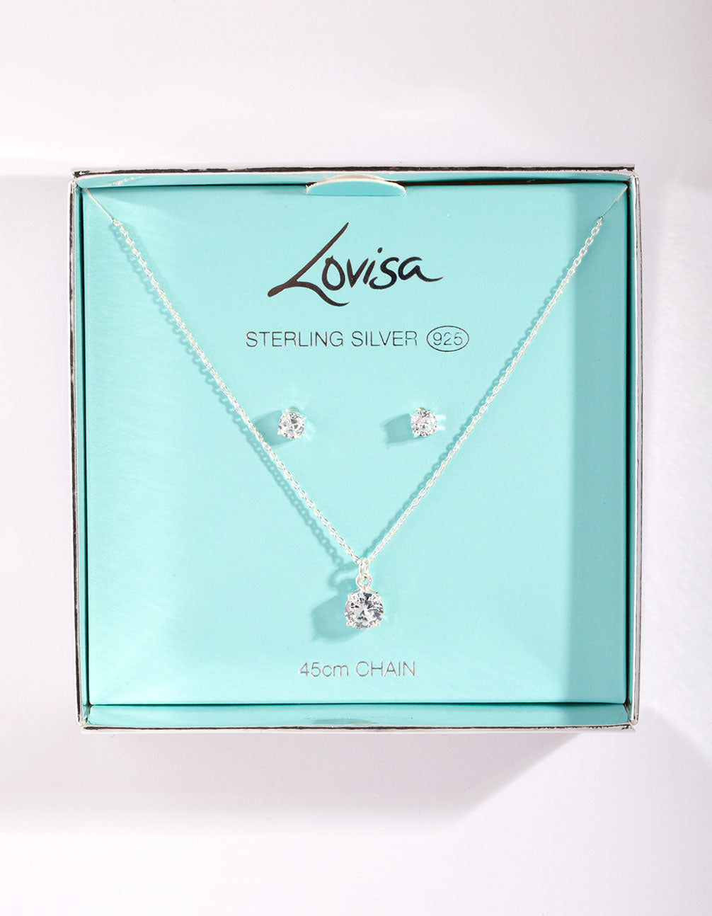 Sterling Silver Crystal Stone Necklace & Earrings Set Gift Box