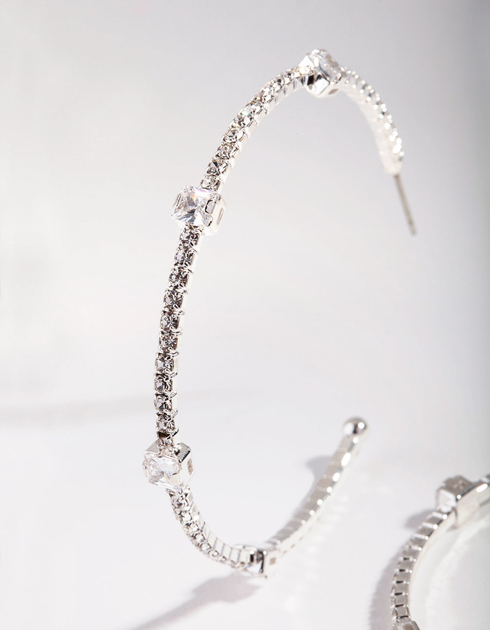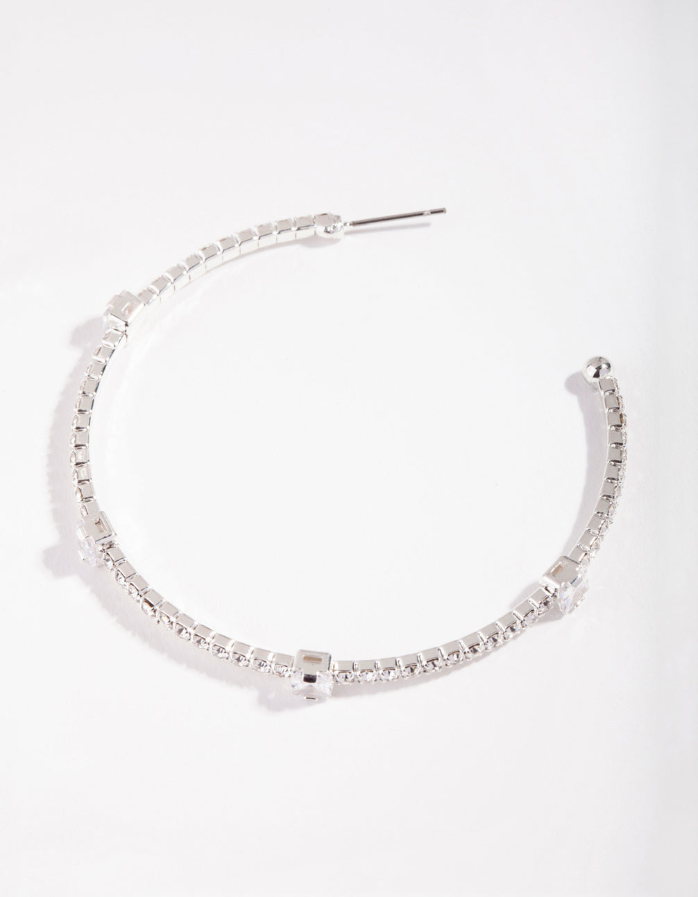 Silver 60mm Stone & Diamante Hoop Earrings Silver 60mm Stone & Diamante Hoop Earrings Silver 60mm Stone & Diamante Hoop Earrings
