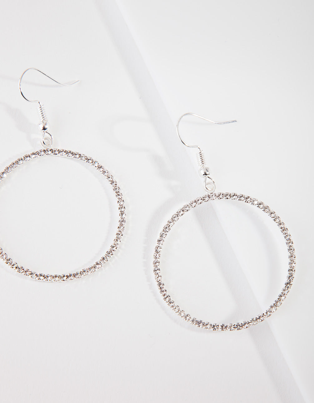 Silver Diamante Circle Drop Earrings