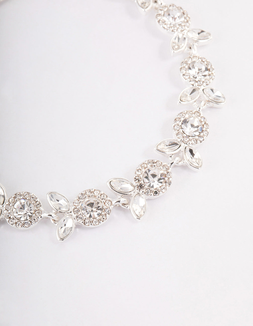 - This bracelet features a stunning silver setting with diamante, floral clusters for a feminine finish.