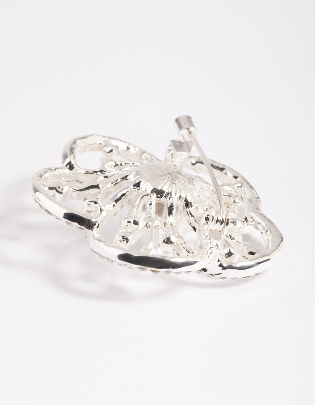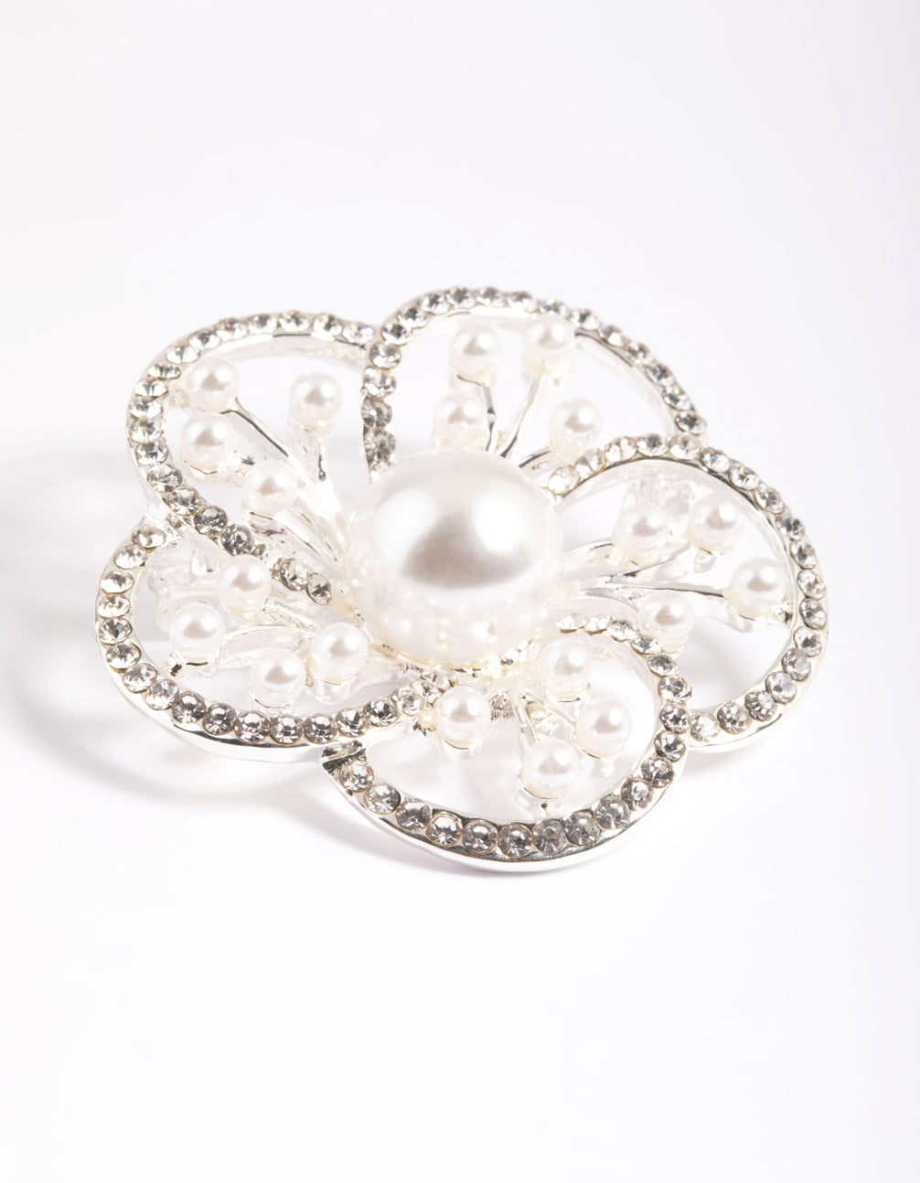Silver Diamante Pearl Flower Brooch Silver Diamante Pearl Flower Brooch Silver Diamante Pearl Flower Brooch