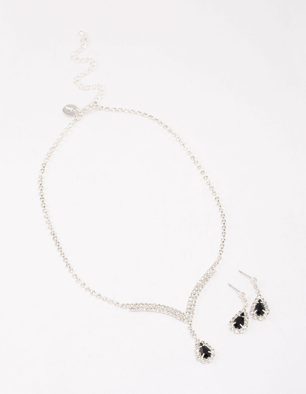 • Silver Diamante Stone Long Earrings & Necklace Set - link has visual effect only