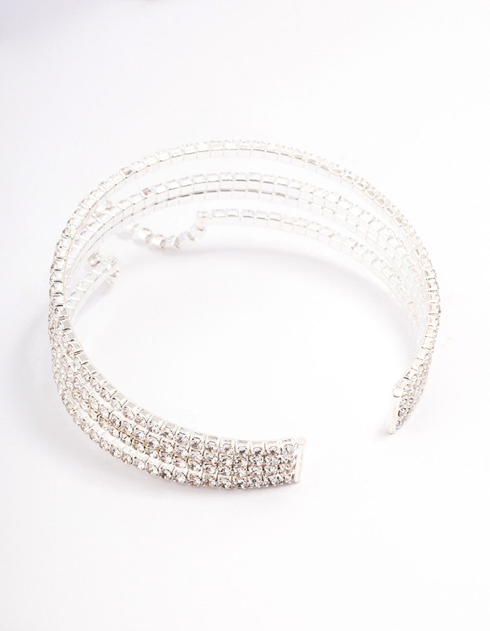 - This silver-toned wrist cuff features a diamante encrusted, triangular shaped design for an eye-catching finish to your stack.