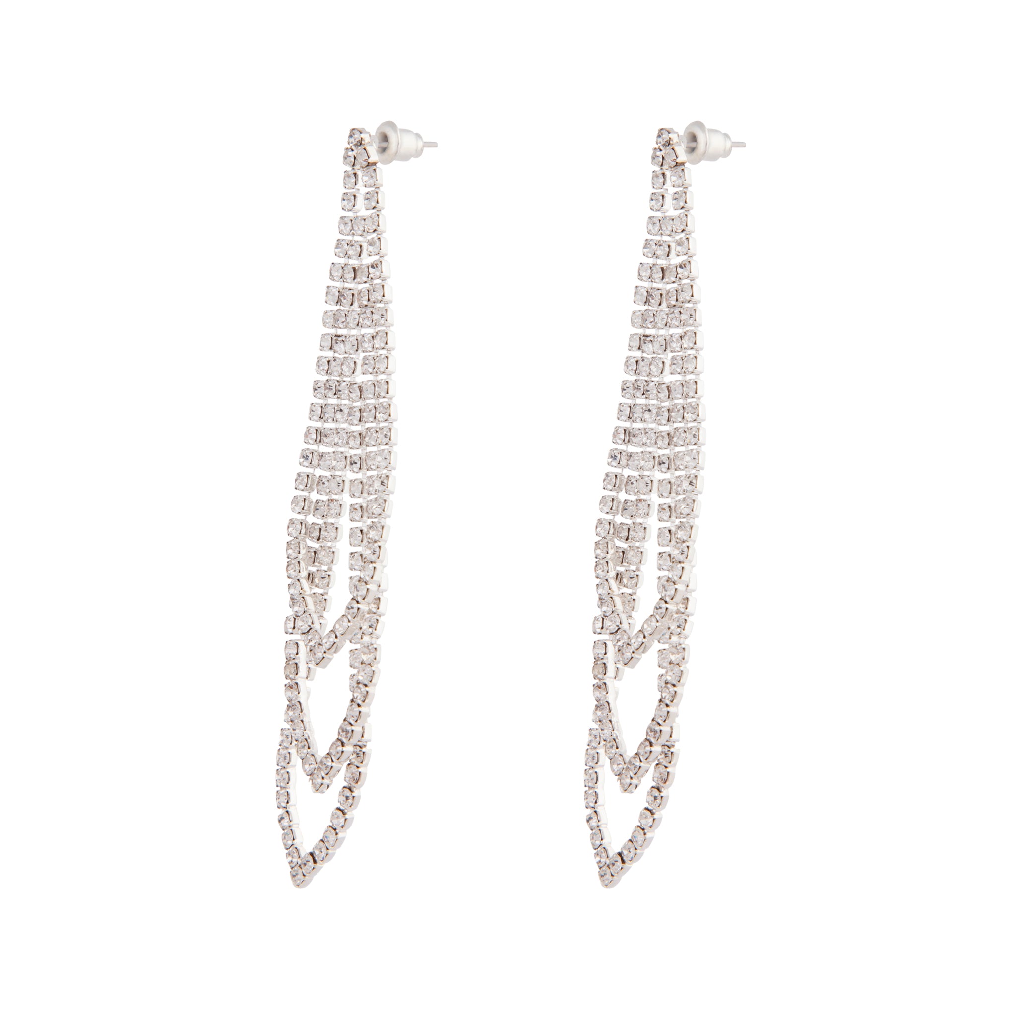 A pair of silver-toned earrings with a cup chain diamante design.