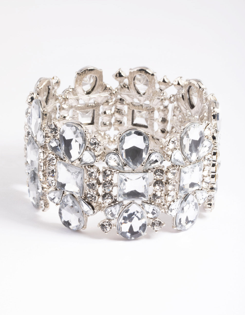 Pair our Silver Large Mix Stone Statement Bracelet with some dainty, diamante bracelets for a luxe, layered look.