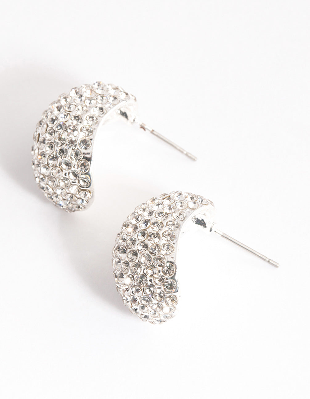 - These hoop earrings feature a stunning silver setting and bold hoop, embellished with delicate diamantes.