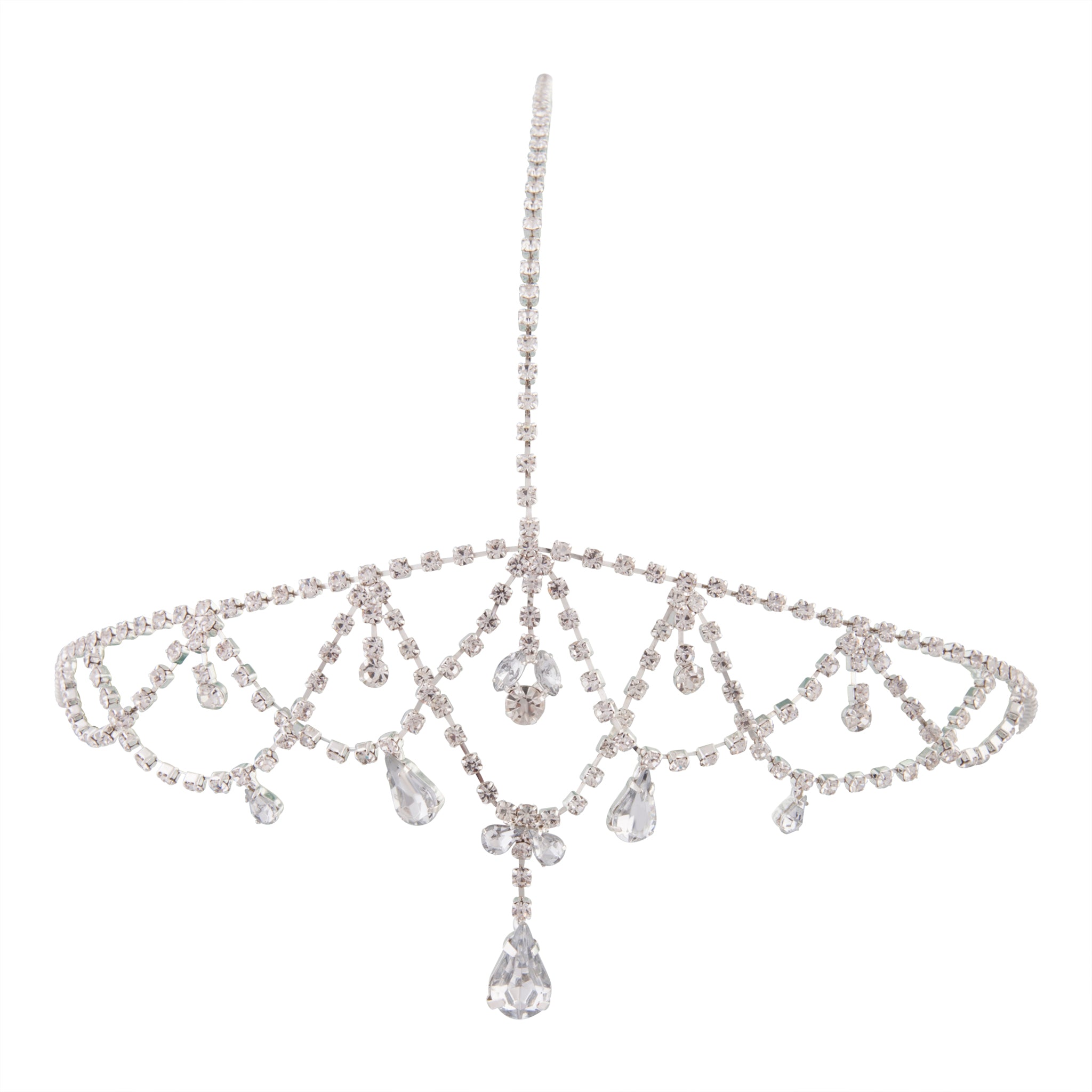 Add a touch of character to your event look with intricate hair accessories. This head chain is designed to drape over the crown of your head. It is silver-toned and features a diamante drop design with an elastic headband at the back for added comfort. Style with delicate silver rings for an on-trend and dreamy aesthetic.