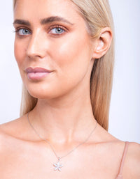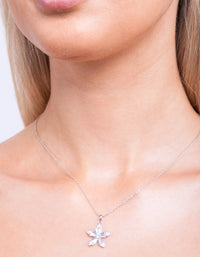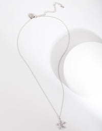 Silver Cubic Zirconia Flower Trapezoid Necklace