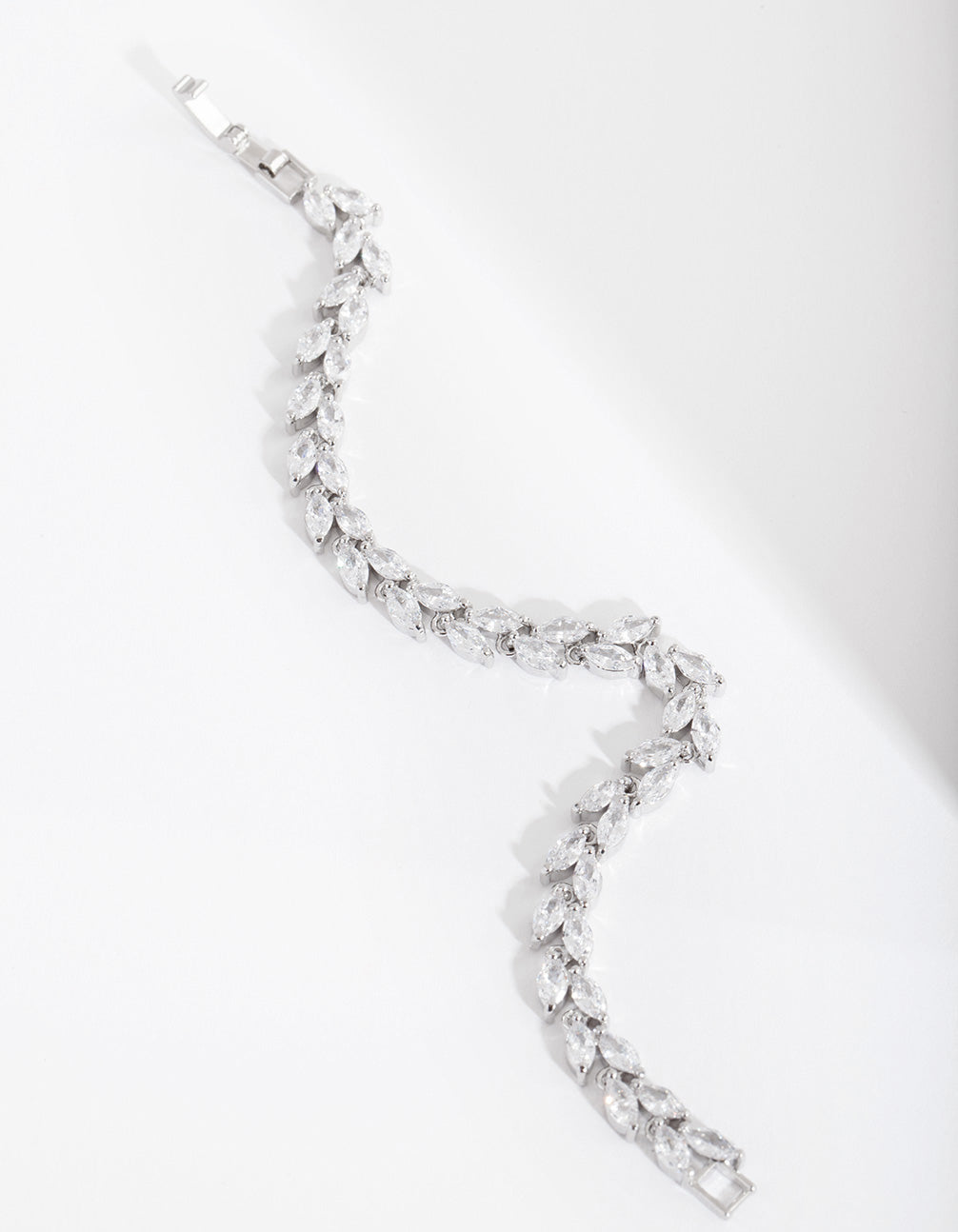 Silver Diamond Simulant Petal Row Tennis Bracelet