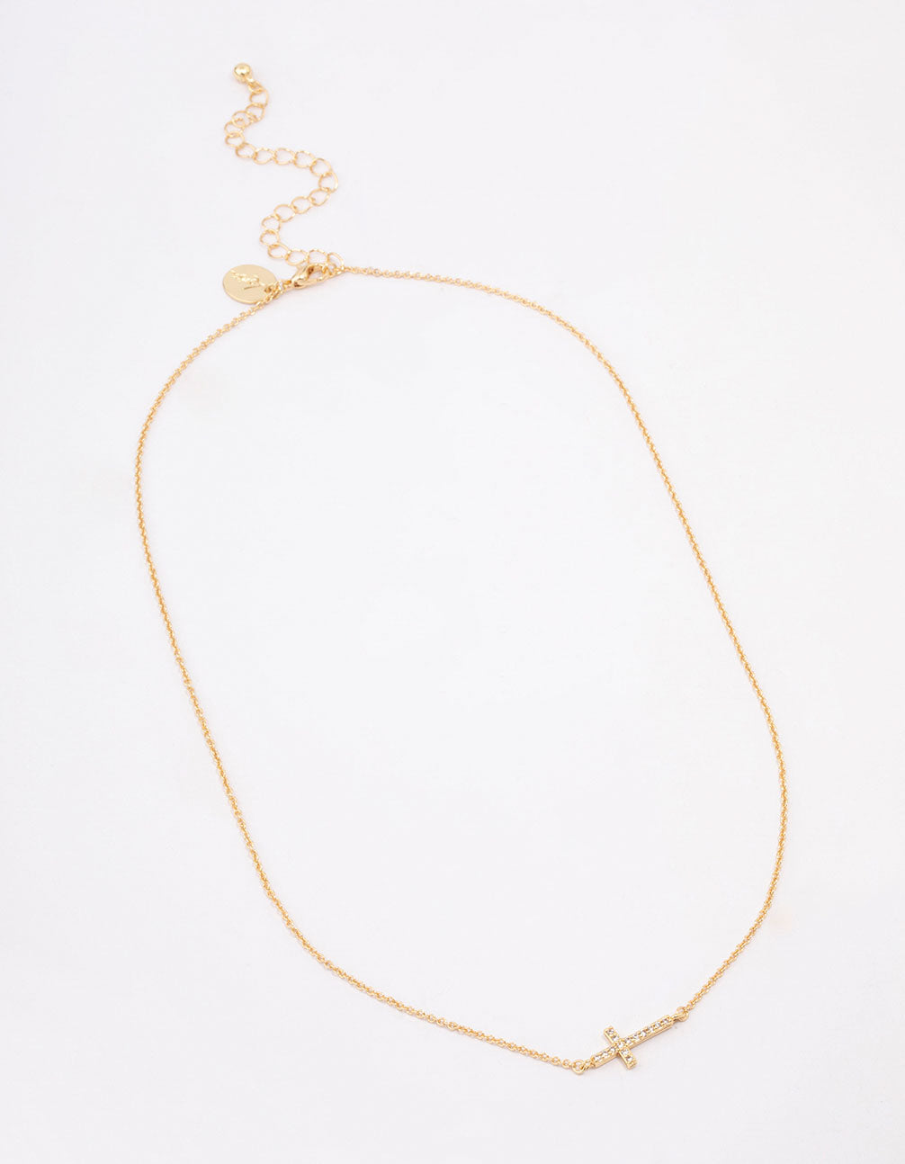 Gold Plated Diamante Cross Fine Pendant Necklace