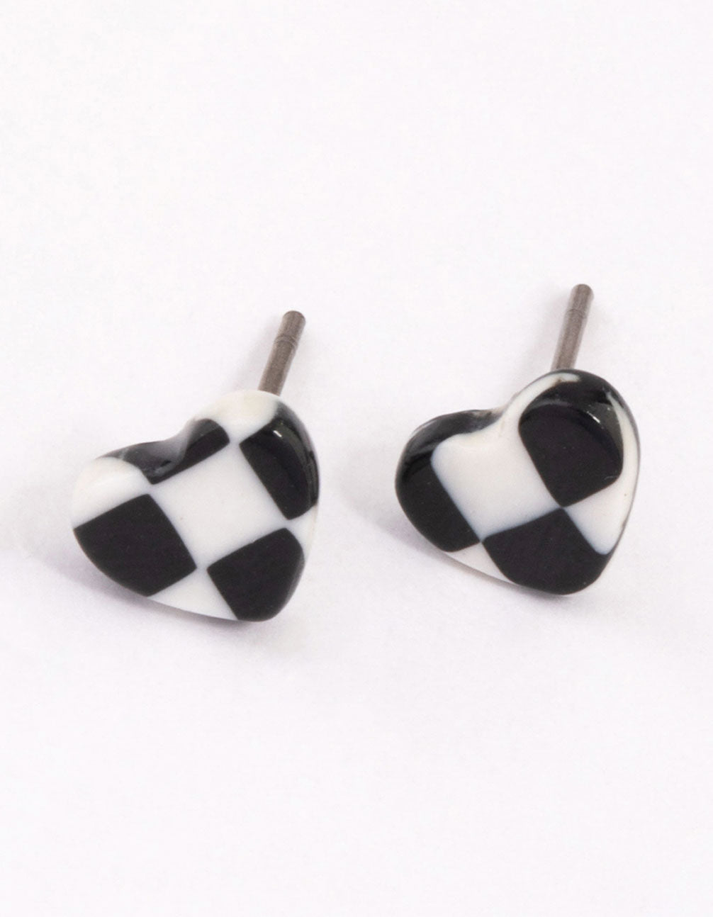 White & Black Check Heart Stud Earrings