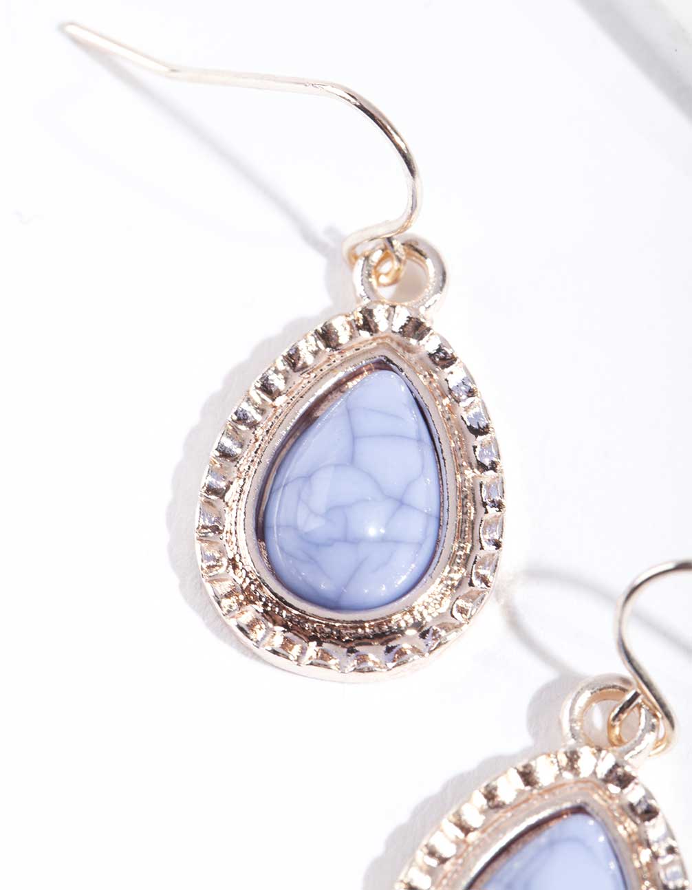 A pair of rose gold-toned mini etched stone tear drop earrings