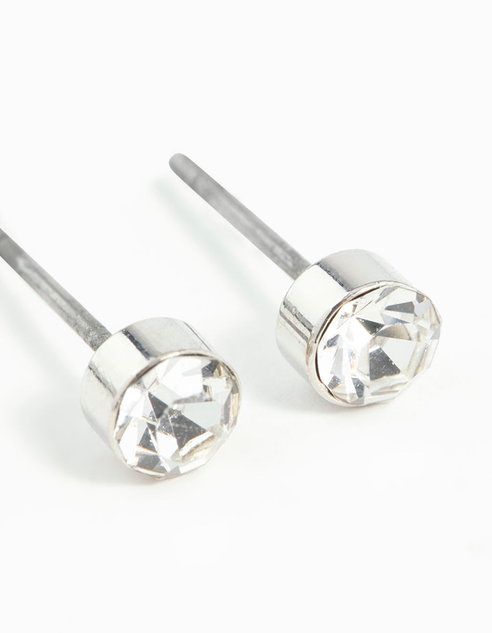 Add a touch of simplicity to your look with these silver toned micro diamtante stud earrings.