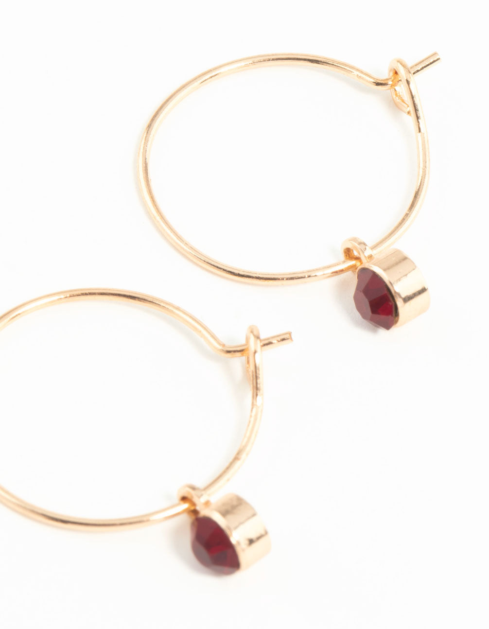 Add some extra style to your look with fashion earrings. This pair features a gold-toned red stone fine hoop design.