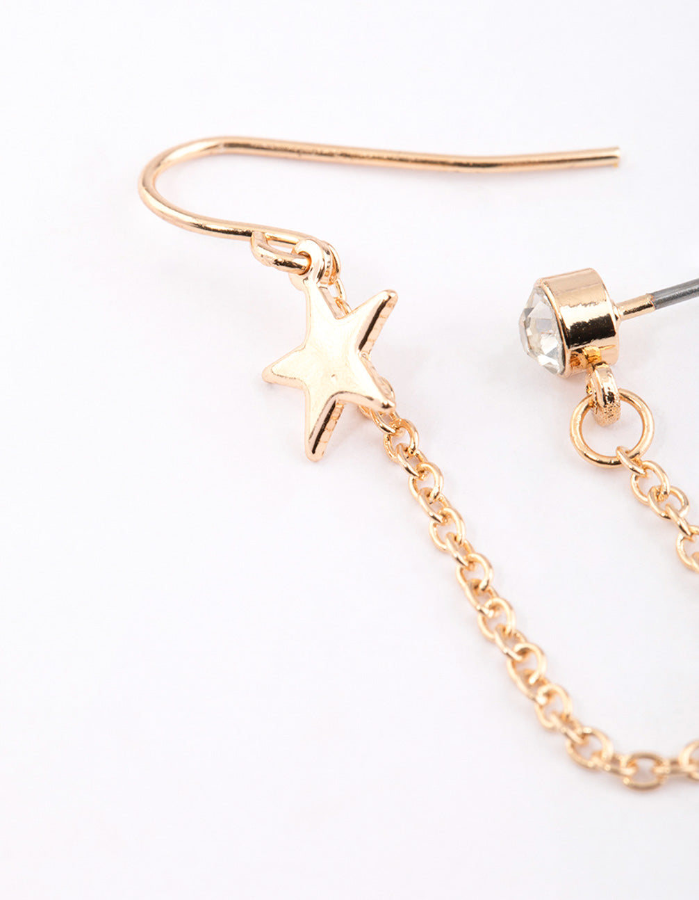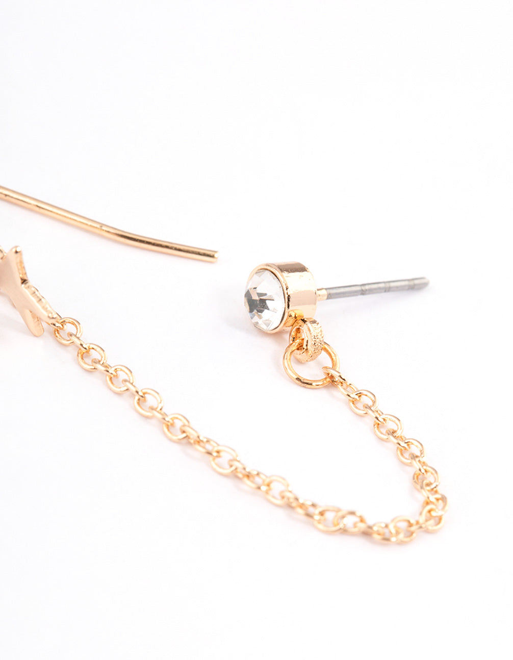 - This set of stud earrings feature a gold-toned setting with a diamante embellished chain detail for an on-trend finish.