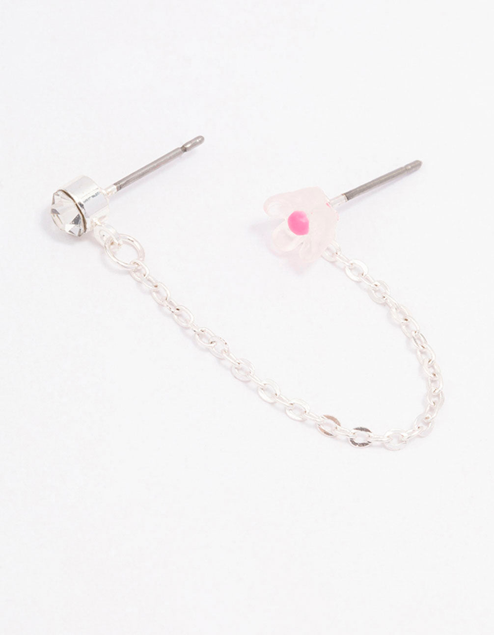 • Pink Flower Diamante Stud Chain Earrings - link has visual effect only