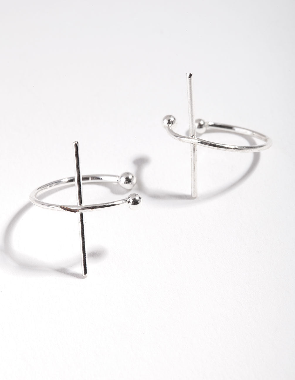 These minimal hoop earrings boast a fine cross design in a polished silver tone.