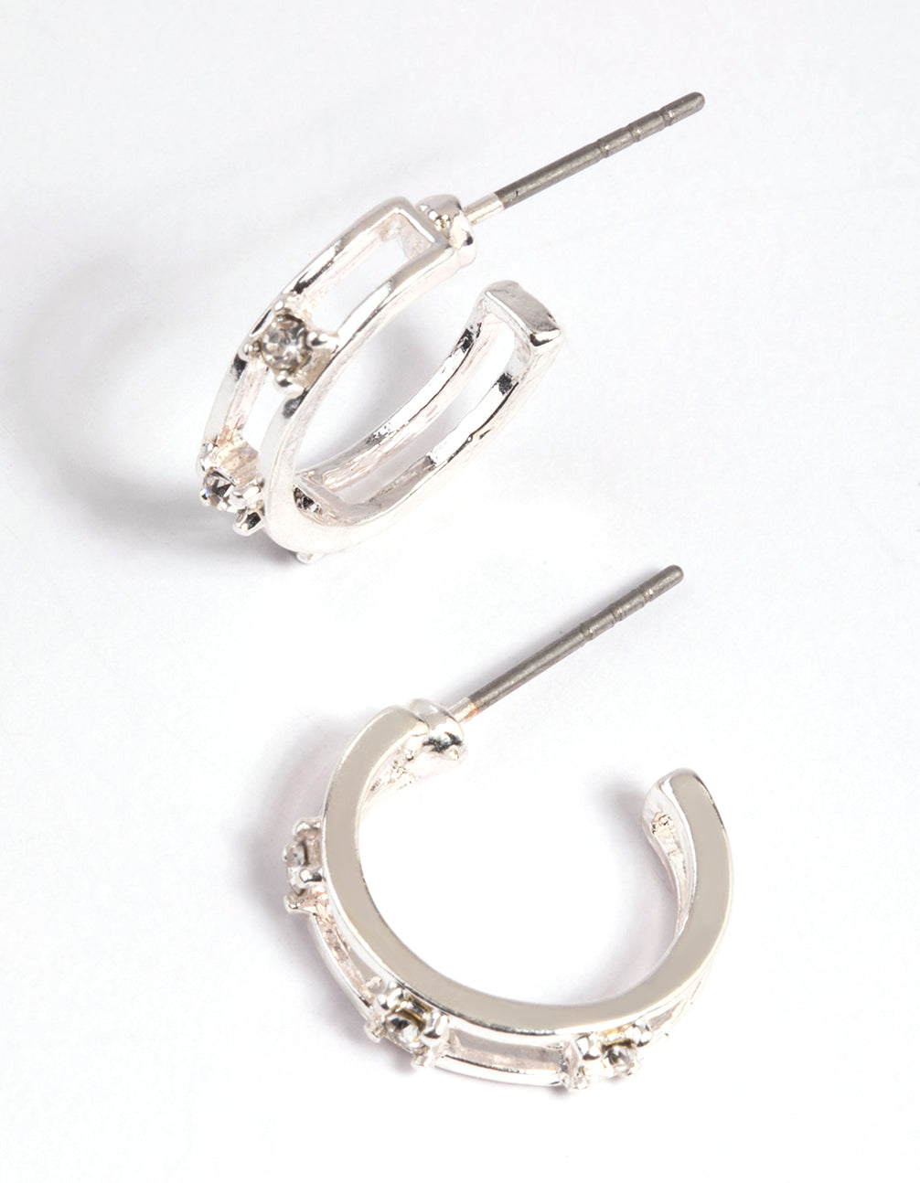 Silver Diamante Huggie Hoop Earrings