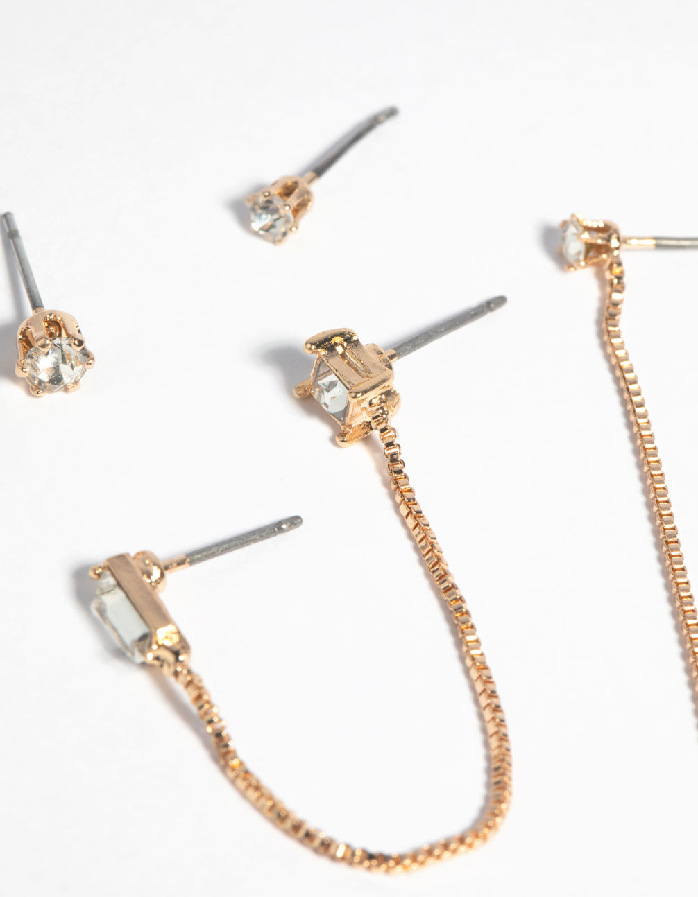 Gold Diamante Loop Chain Stud Earring 5-Pack