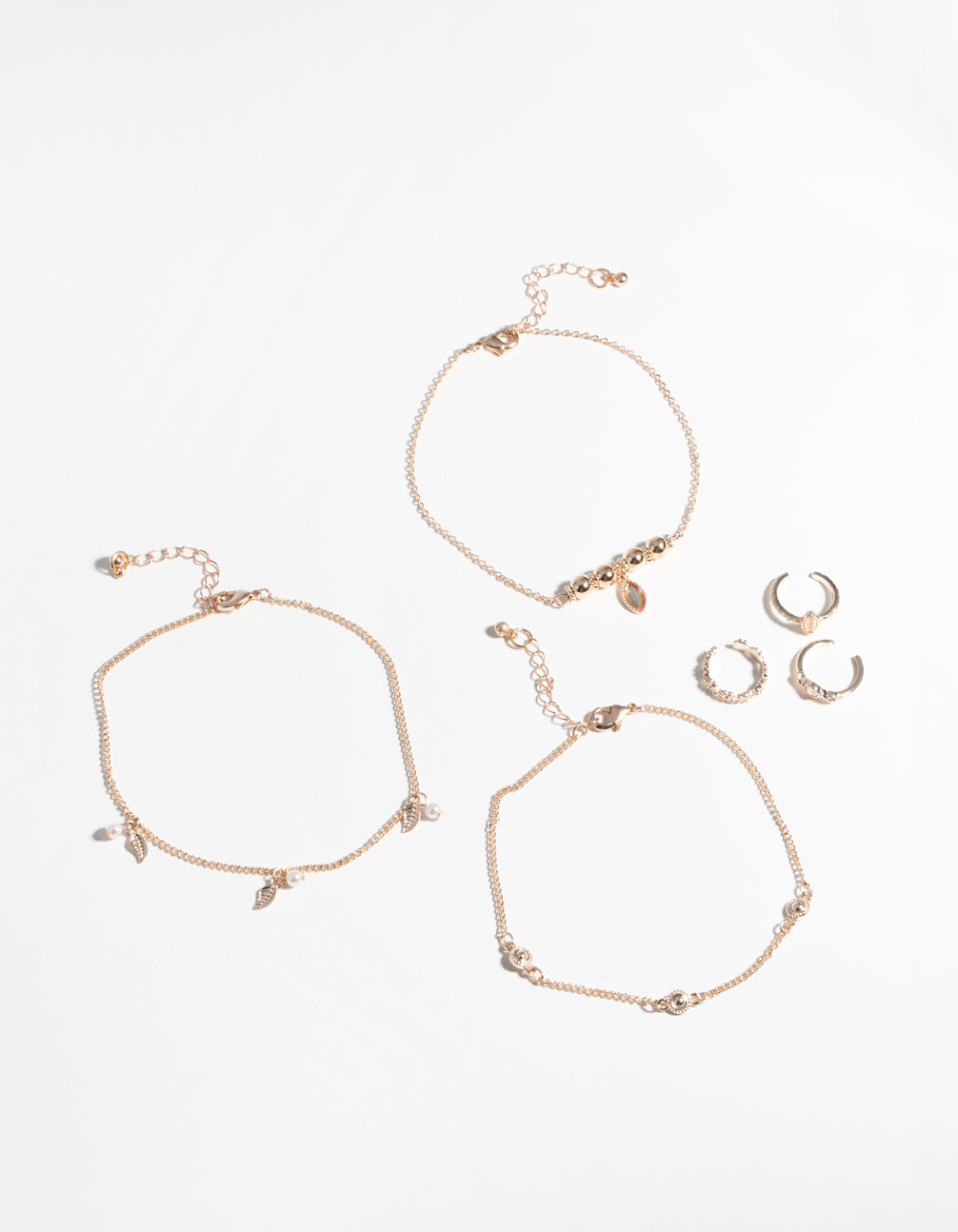 Lovisa loves stacking! Mix and match styles to create your own customised look, or wear them alone for a curated addition to any outfit. This rose-gold-toned set includes three anklets and three toe rings. Perfect piece to add some spring/summer notes to your outfit.