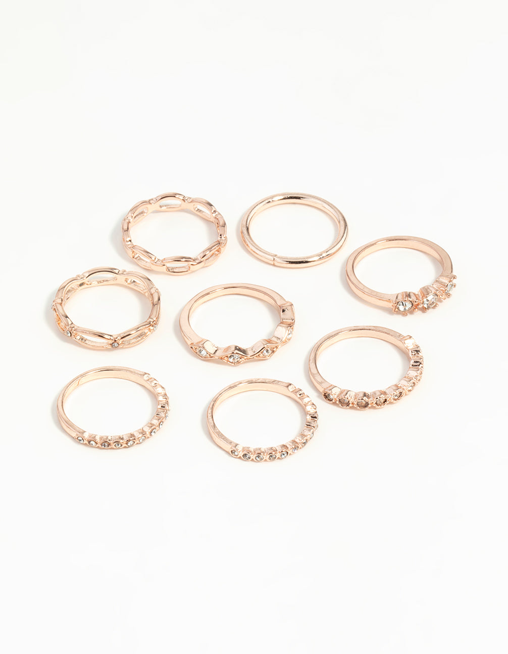 • Rose Gold Diamante Row Mix Ring 8-Pack - link has visual effect only