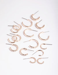 Rose Gold Mixed Diamante Hoop Earrings 8-Pack