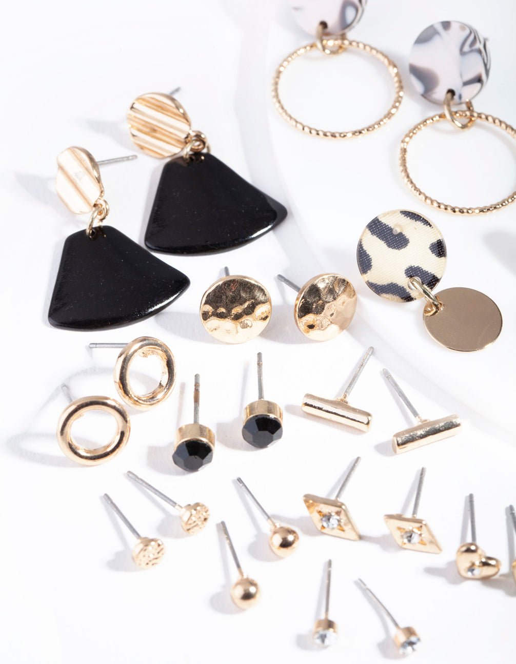 Always have the perfect pair with an earring pack. This style comes in a black and white animal-themed design.