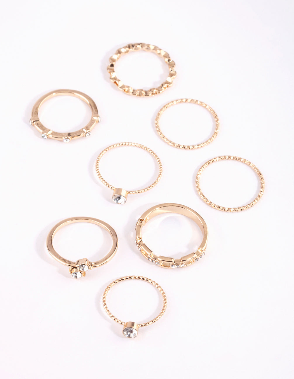Mix them, match them, stack them! This funky ring pack includes a variety of rose-gold-toned rings with diamante embellishments. Layer them together for maximum impact!