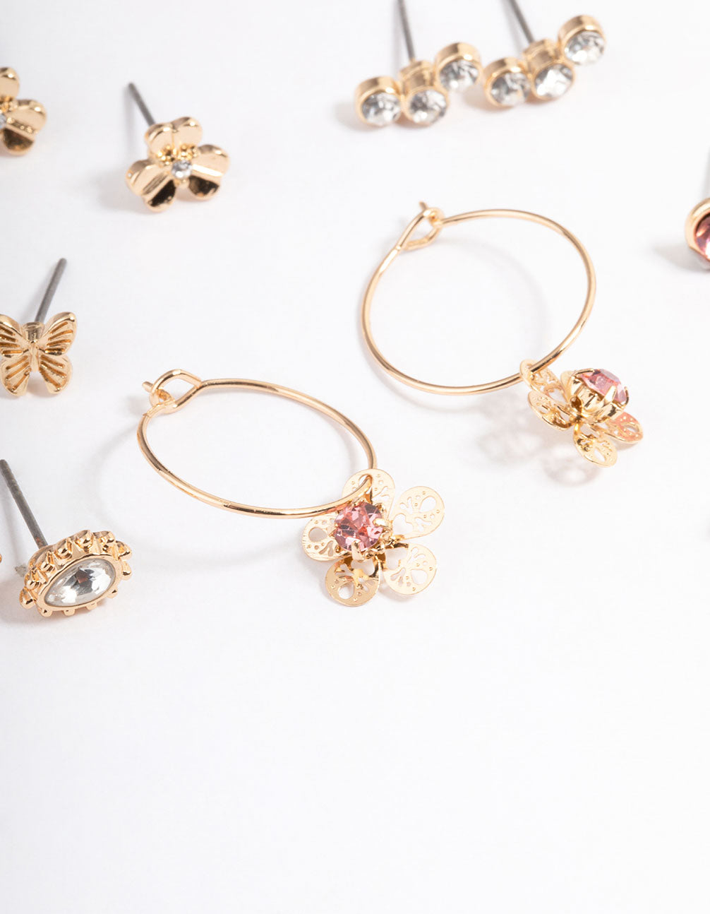 Gold Dainty Diamante Garden Earrings 8-Pack Gold Dainty Diamante Garden Earrings 8-Pack Gold Dainty Diamante Garden Earrings 8-Pack