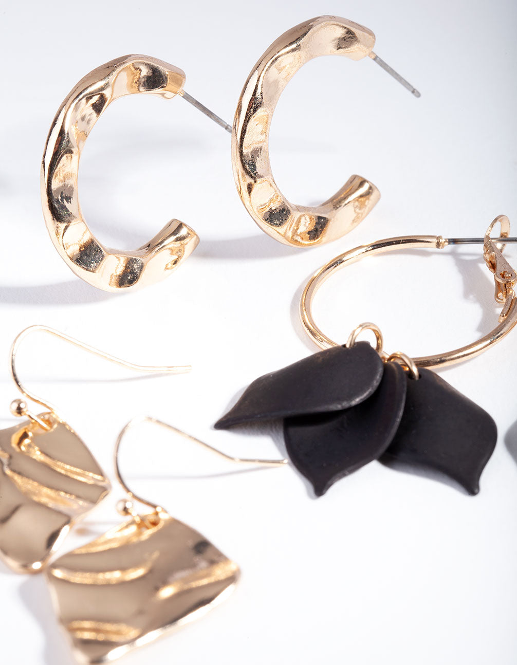 Stack up your earrings to create the perfect curated look, or wear them alone for a more refined addition to your outfit. This pack comes with a trio of styles with gold-toned settings and a floral motif.
