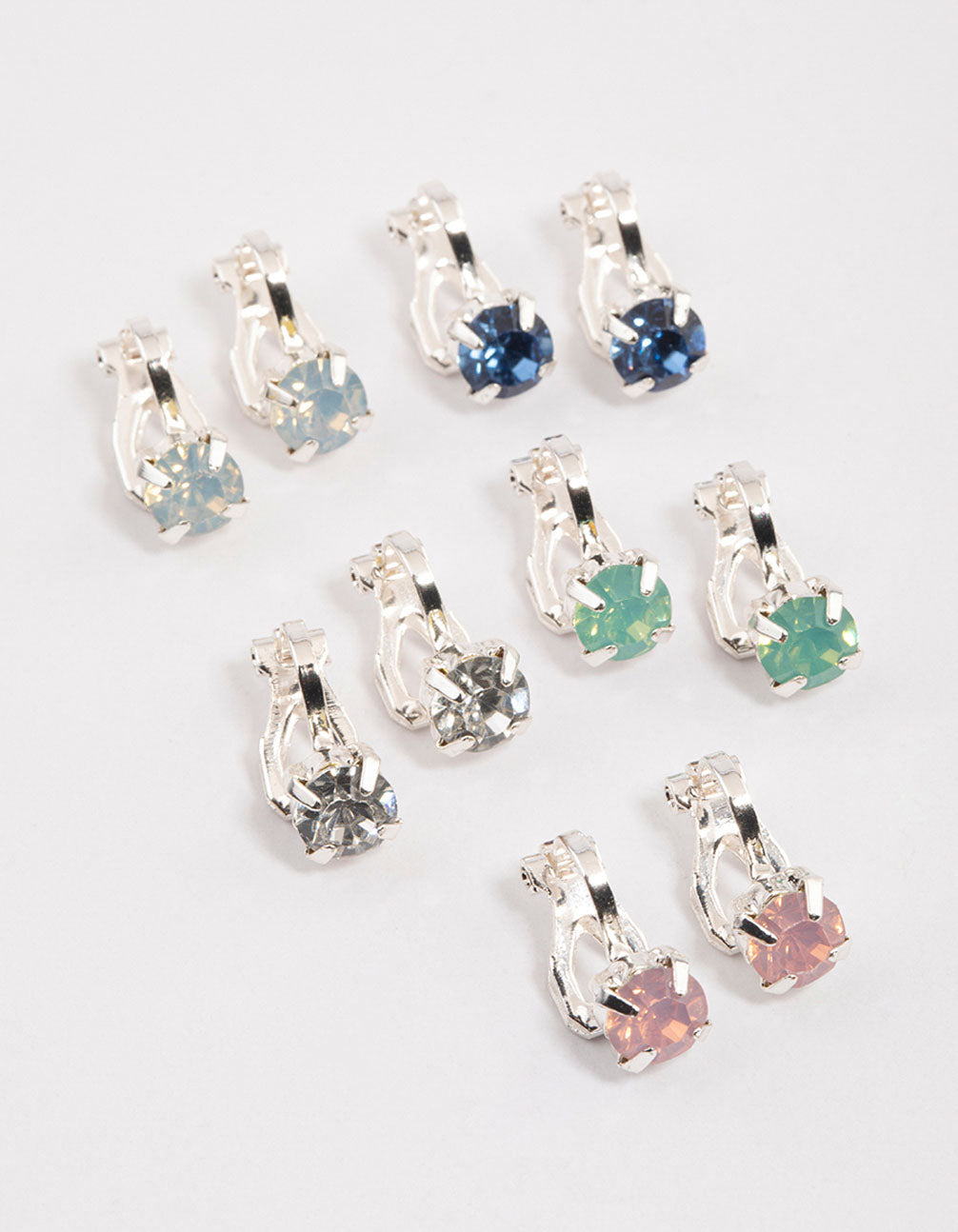 Silver Claw Diamante Clip On Earrings 5-Pack