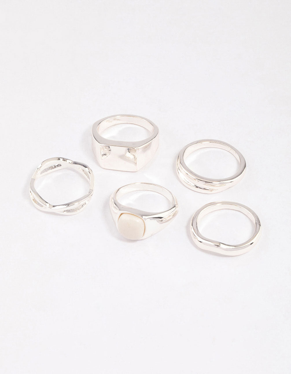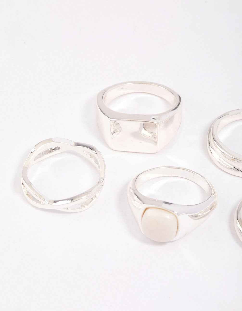 - Maximise your ring stack and embellish your look with this set of organic-shaped, silver-toned signet rings.