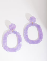 Purple Acrylic Oval Drop Earrings