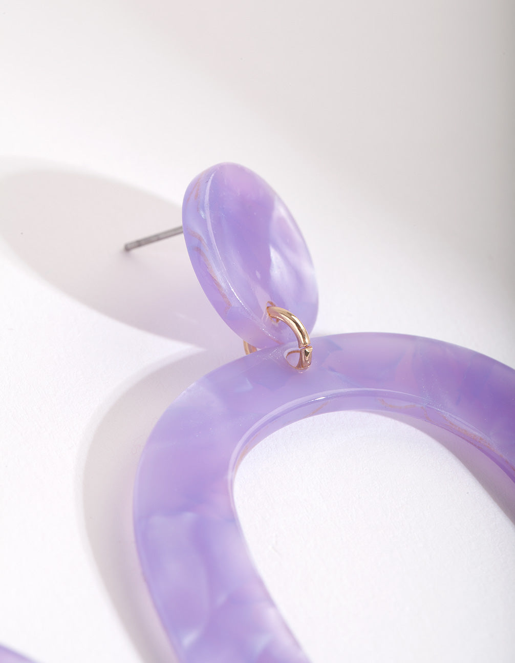 Fun fashion earrings are the easiest way to add a pop of colour to your wardrobe. These acrylic earrings feature a purple open oval design.