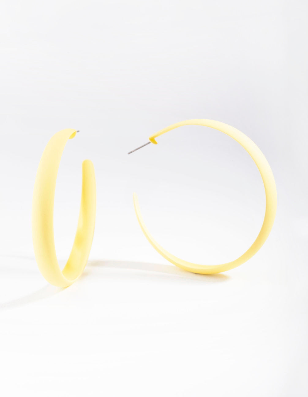 Brighten up any look with a pair of sunshine yellow hoop earrings! This pair come with a medium hoop shape and a matte finish, making them so easy to style with printed dresses or tops.