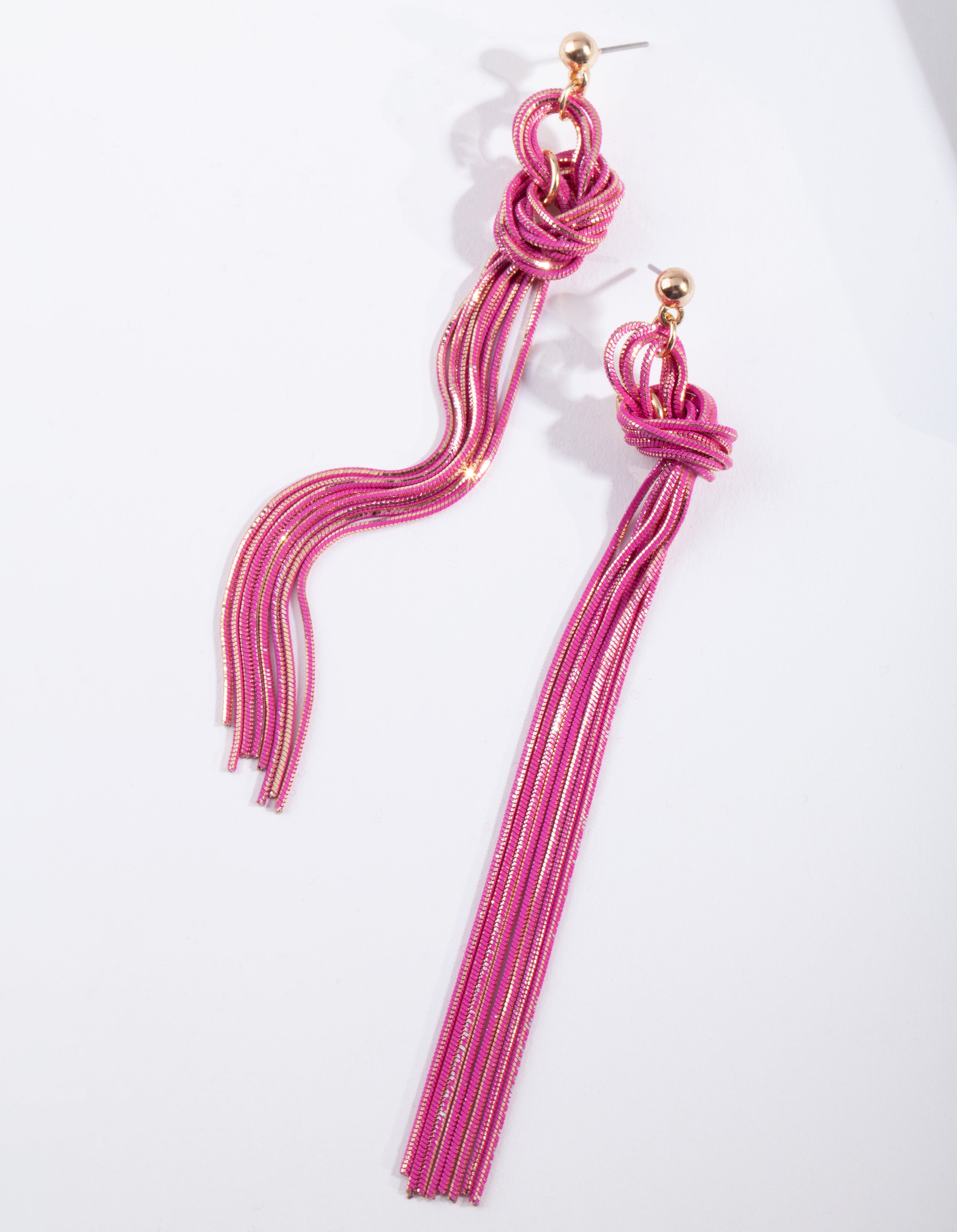 Go from day to night with a pair of fashion earrings! These drop earrings boasts a knotted cutchain design in a gold-tone setting.