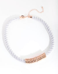 Complete your daily edits with our fun everyday neckwear range. This necklace boasts a grey twist rope design with diamante embellished ring details in a rose gold tone.