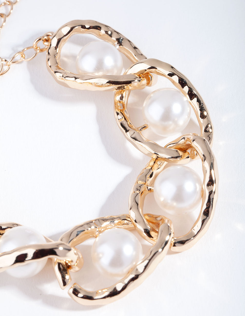 Look to classic gold for next level wrist stacking that makes an impact. This gold-toned bracelet features a stunning link and pearl design.