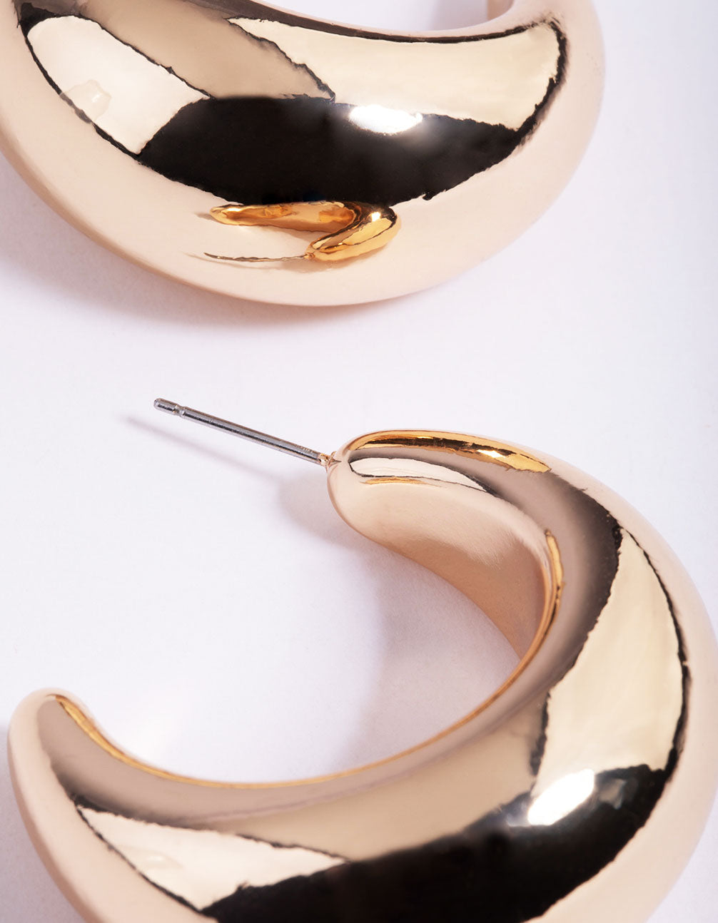 - These thick gold-toned hoop earrings feature a bold, curved design for a modern and trending finish to your look.