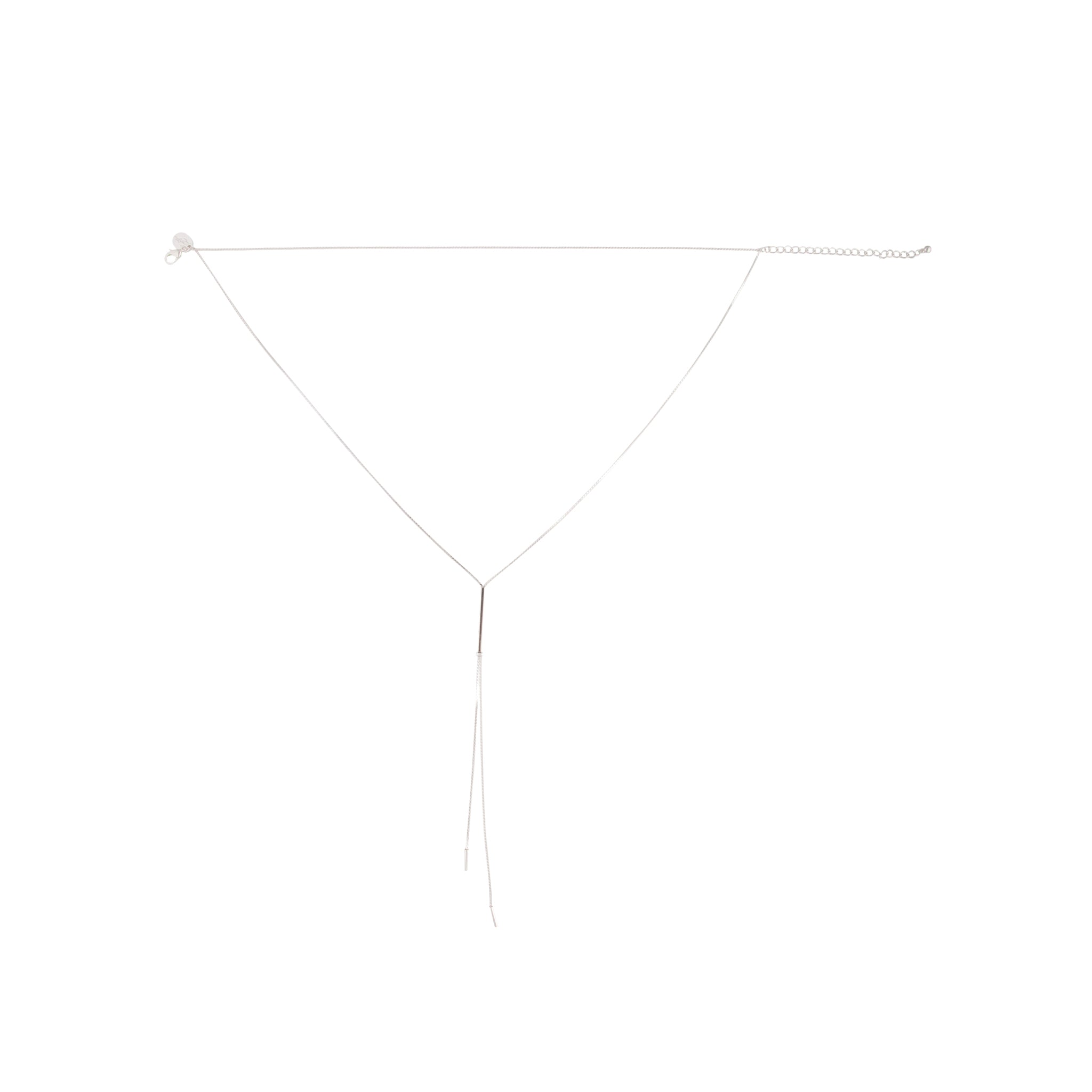 This classically designed choker comes in a silver tone with a snake chain crossover detail.