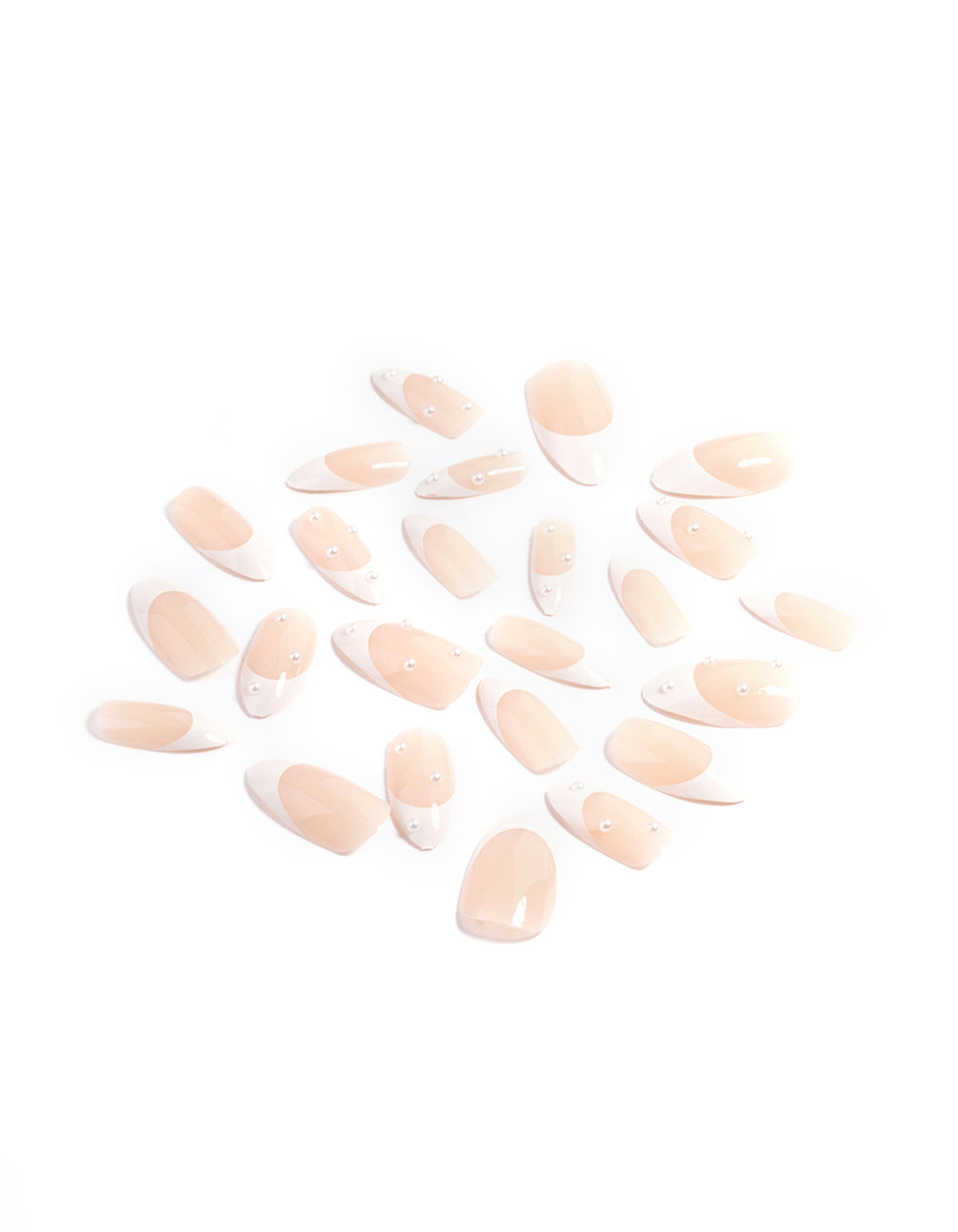 Style these pearl amond-shaped nails with an adorning ring stack for an on-trend look.
