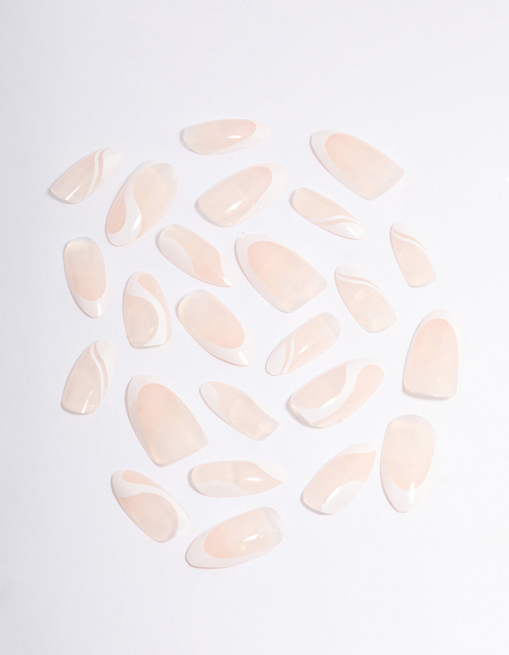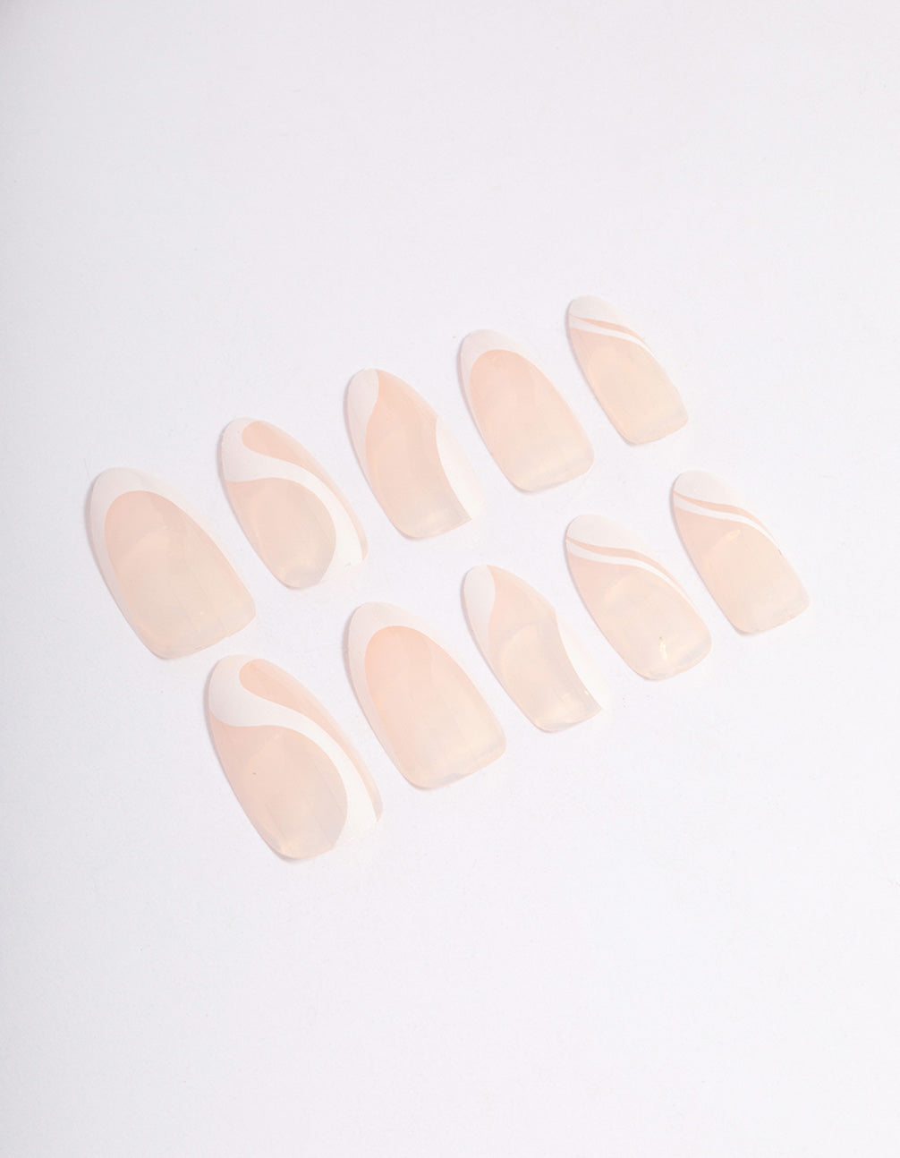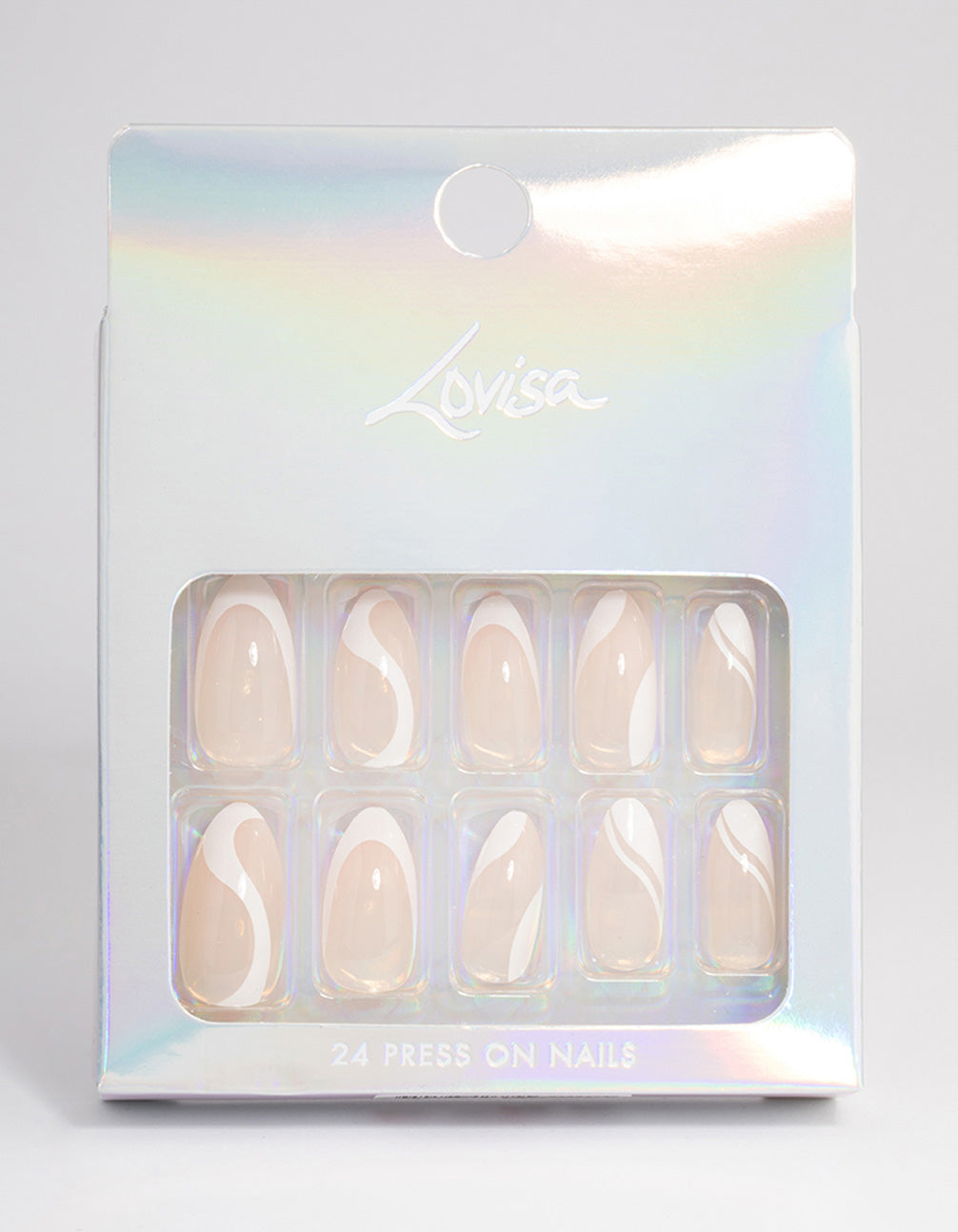 Style these white, swirl press on nails with an adorning ring stack for an on-trend look.