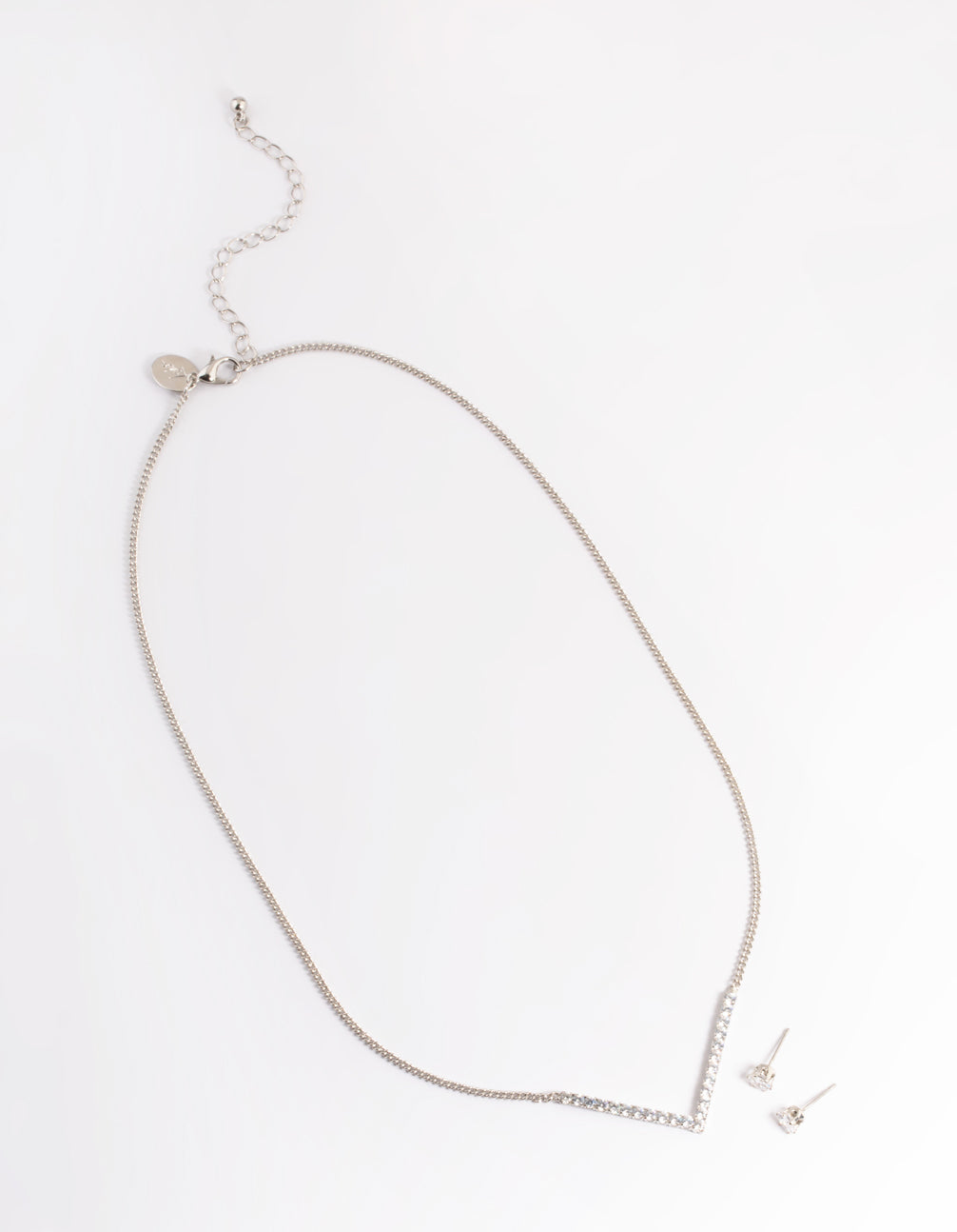 Silver Cubic Zirconia Necklace & Stud Earrings Silver Cubic Zirconia Necklace & Stud Earrings Silver Cubic Zirconia Necklace & Stud Earrings Silver Cubic Zirconia Necklace & Stud Earrings